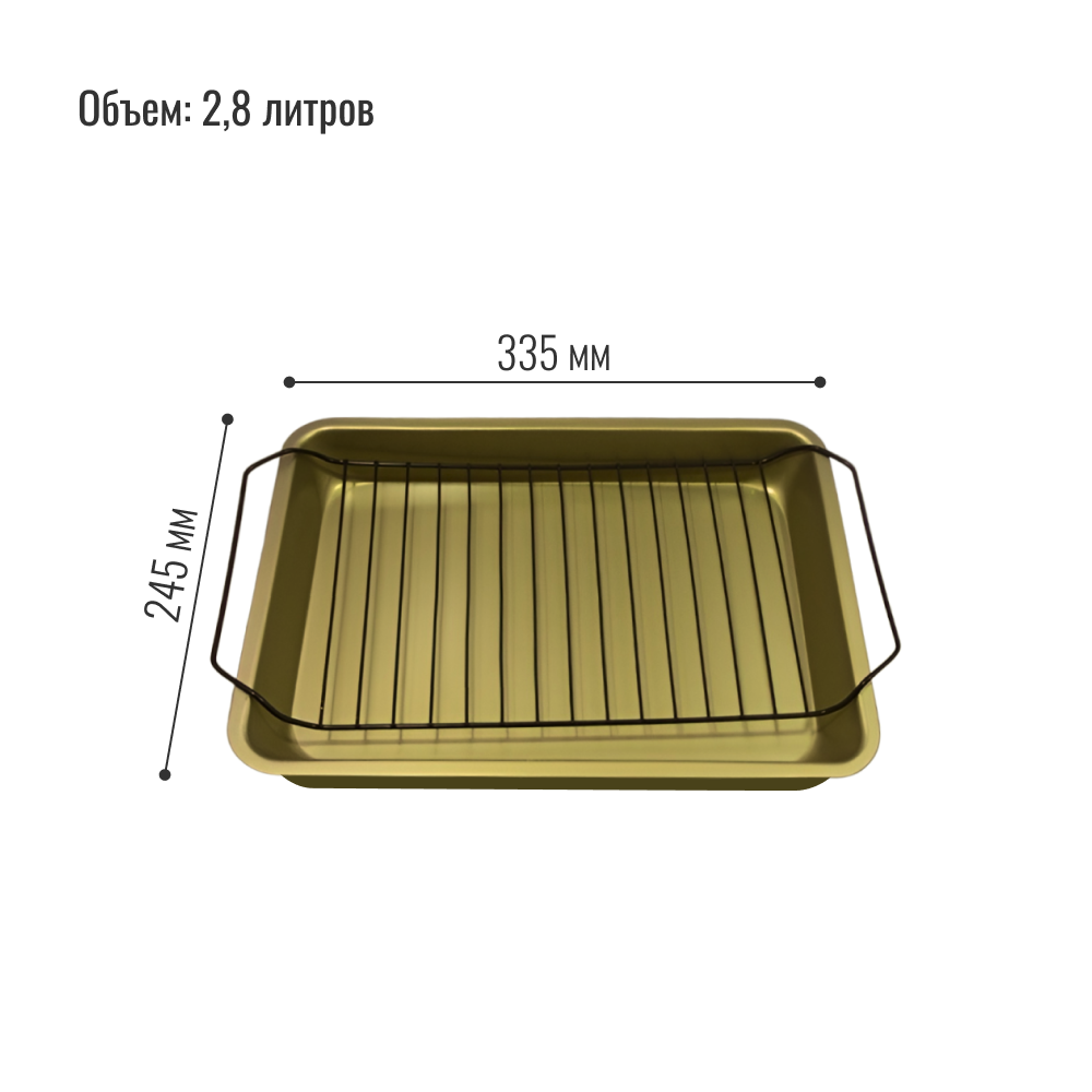 Купить Форма для приготовления Homium с решеткой, Металлическая форма для запекания в духовке с решеткой, 2,8 л., золото