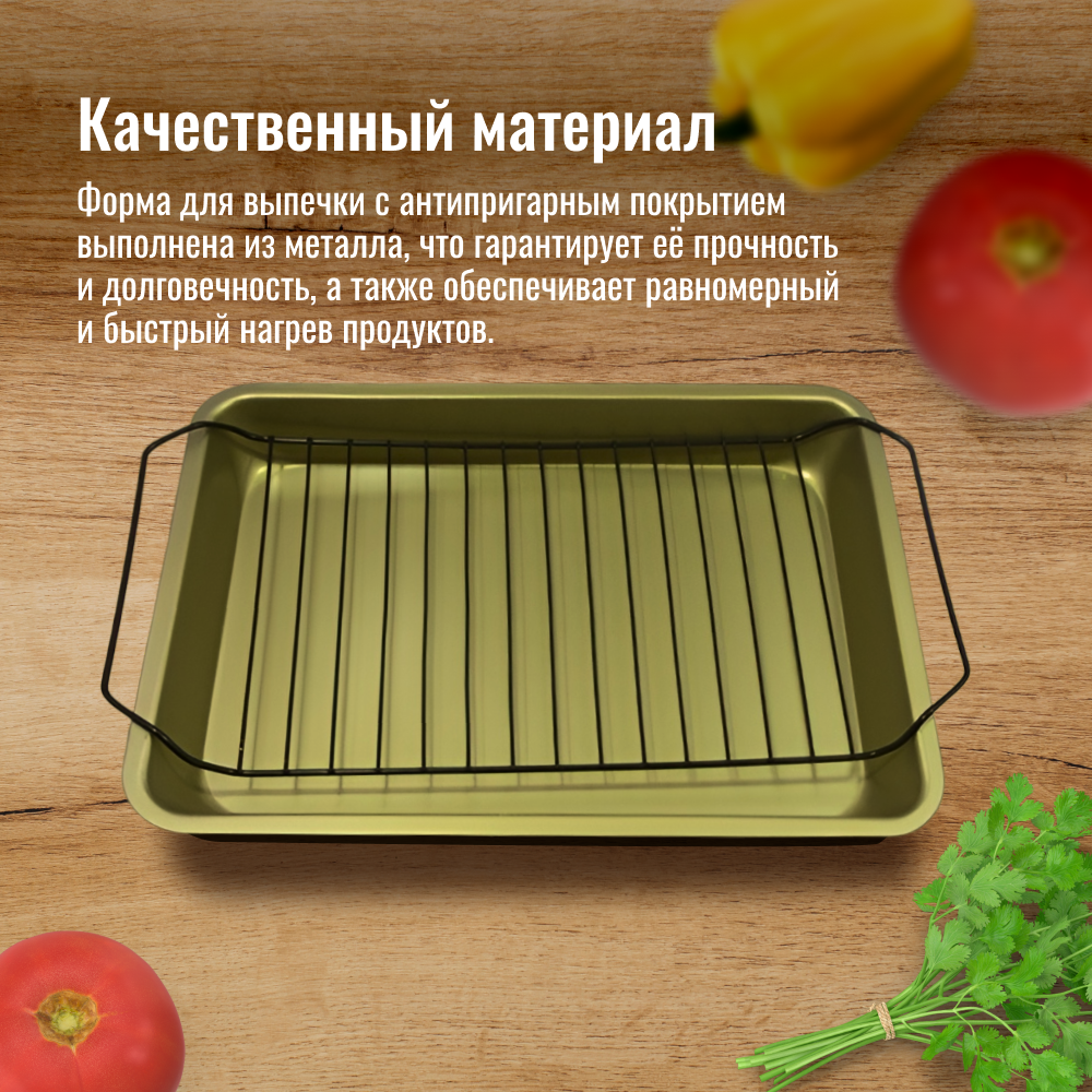 Форма для приготовления Homium с решеткой, Металлическая форма для запекания в духовке с решеткой, 2,8 л., золото интересное: