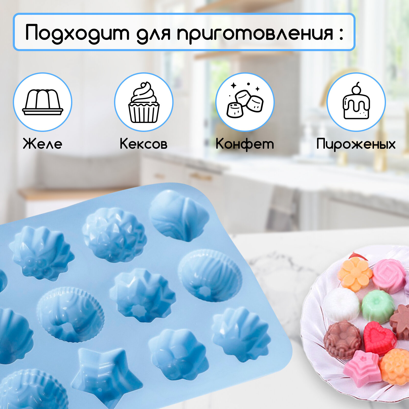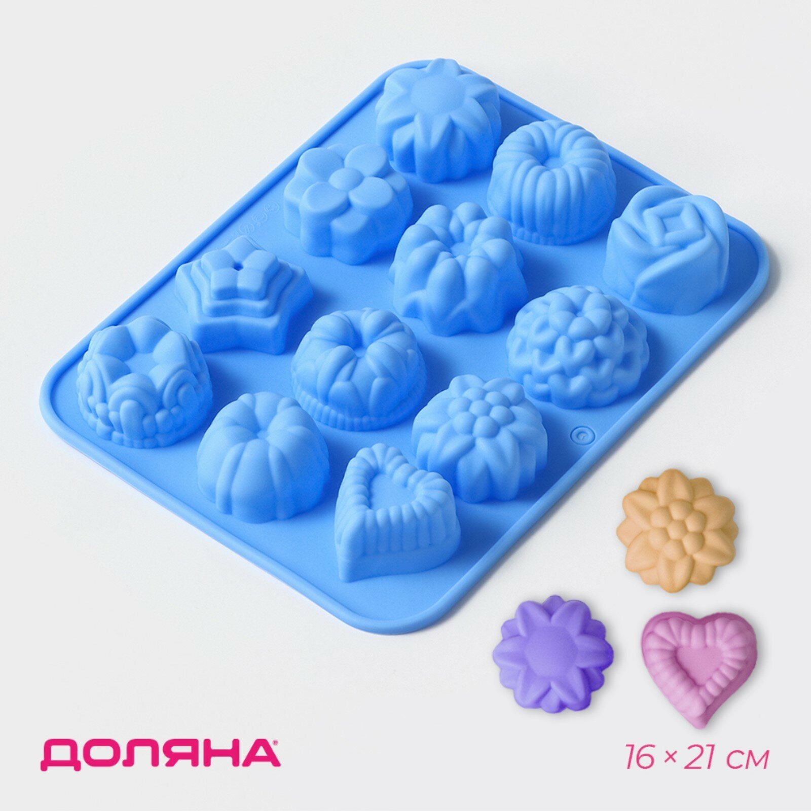 Форма для выпечки Доляна «Немецкий кекс, роза», силикон, 16×21 см, 12 ячеек, цвет голубой интересное: