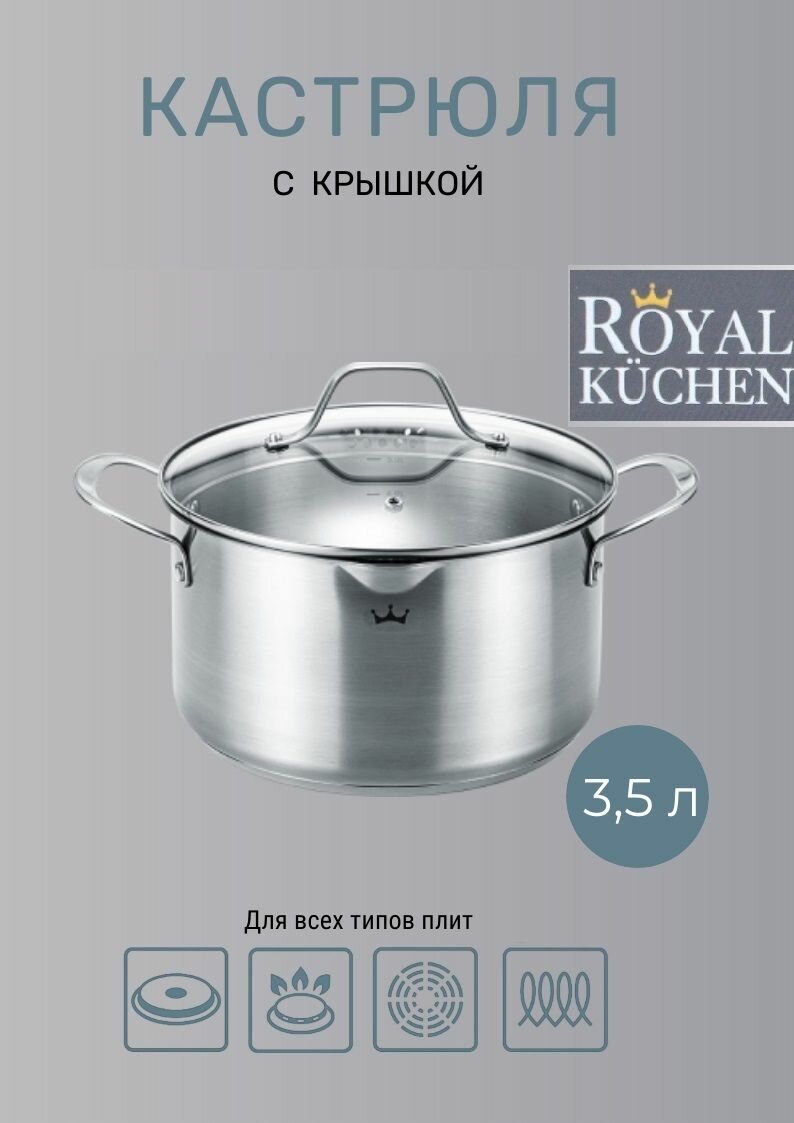 Кастрюля с крышкой Royal Kuchen нержавеющая сталь 3,5 литра интересное: