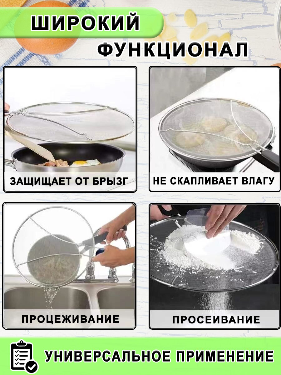 Крышка сетка от брызг для сковороды, защитный экран от брызг, брызгогаситель, сетка защитная, 29 см интересное: