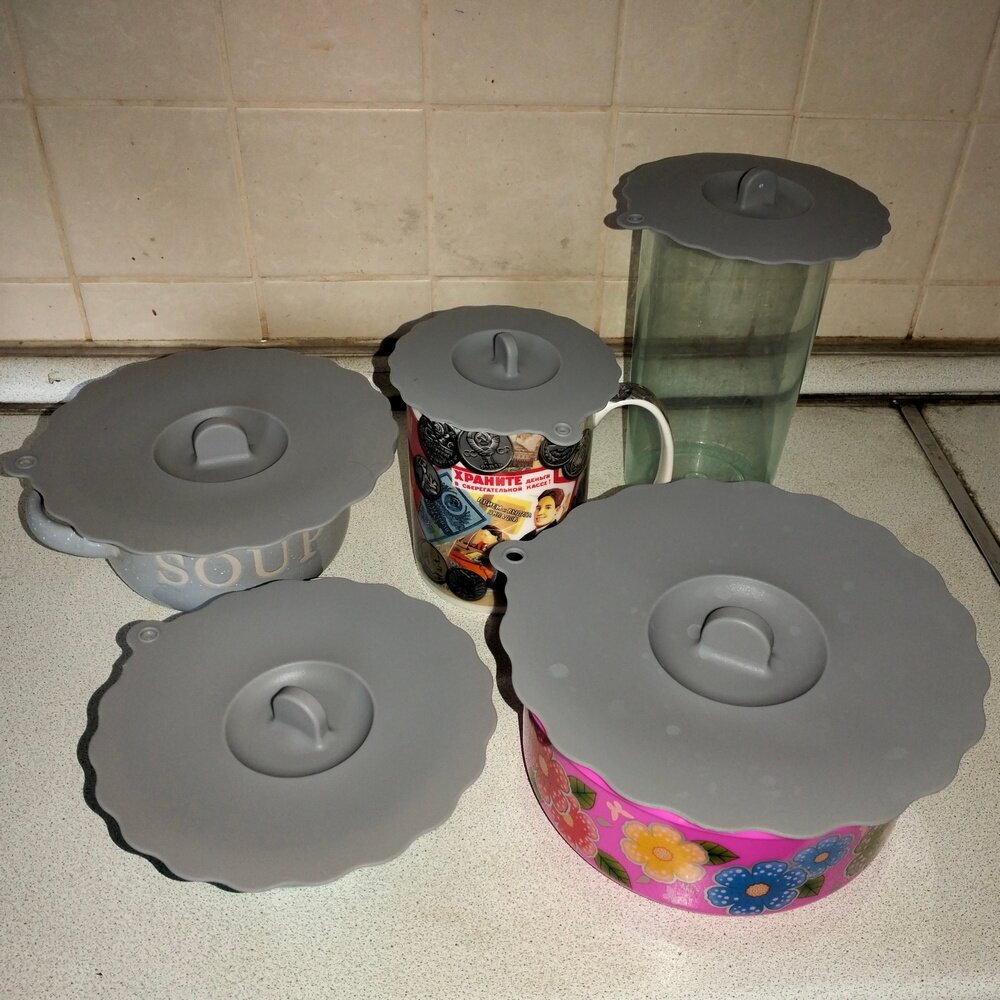Купить Универсальные Силиконовые вакуумные крышки присоски для посуды (5 шт), серые