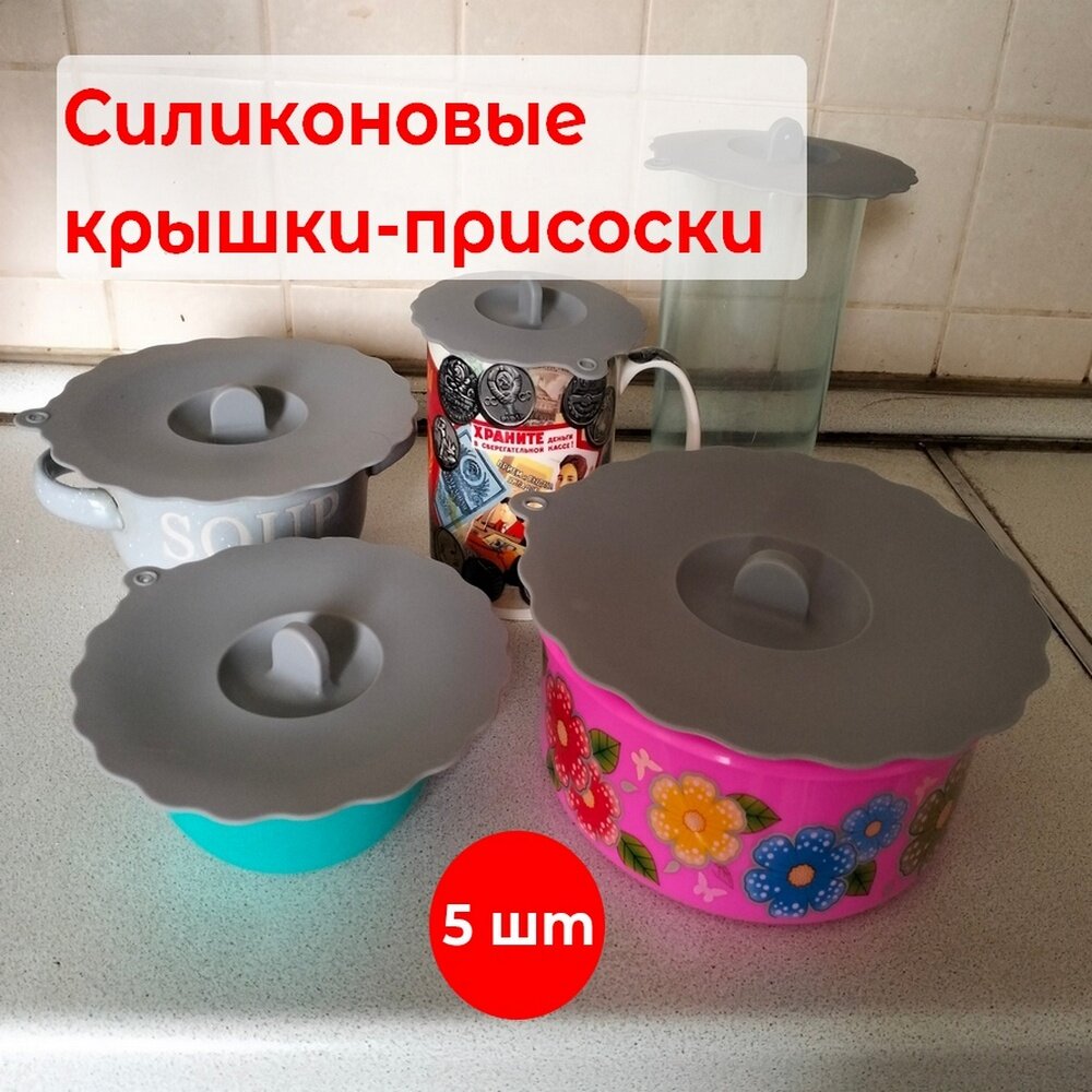 Универсальные Силиконовые вакуумные крышки присоски для посуды (5 шт), серые интересное: