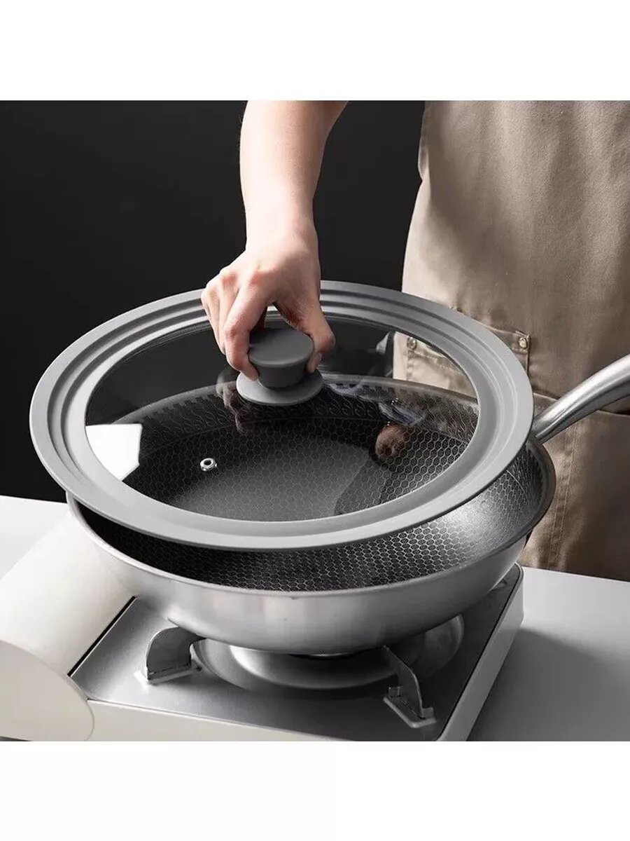 Универсальная крышка для сковороды и кастрюли 3 размера (24, 26, 28 см), серый интересное: