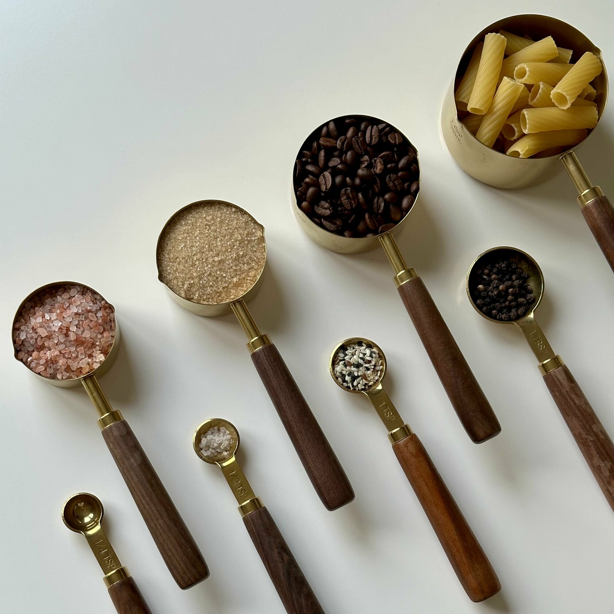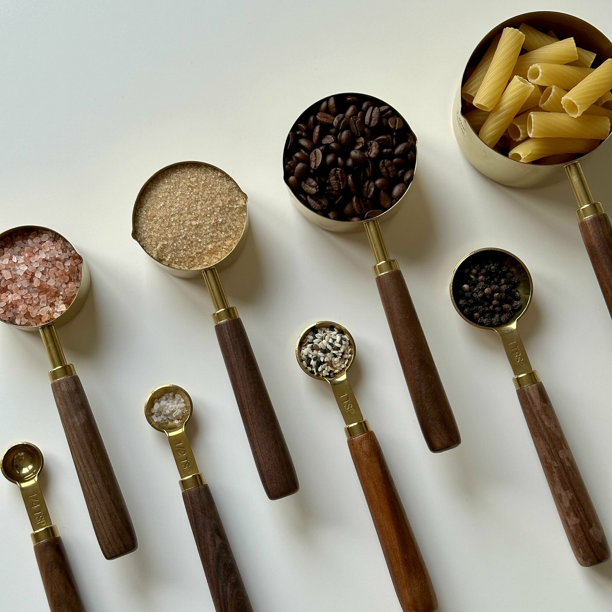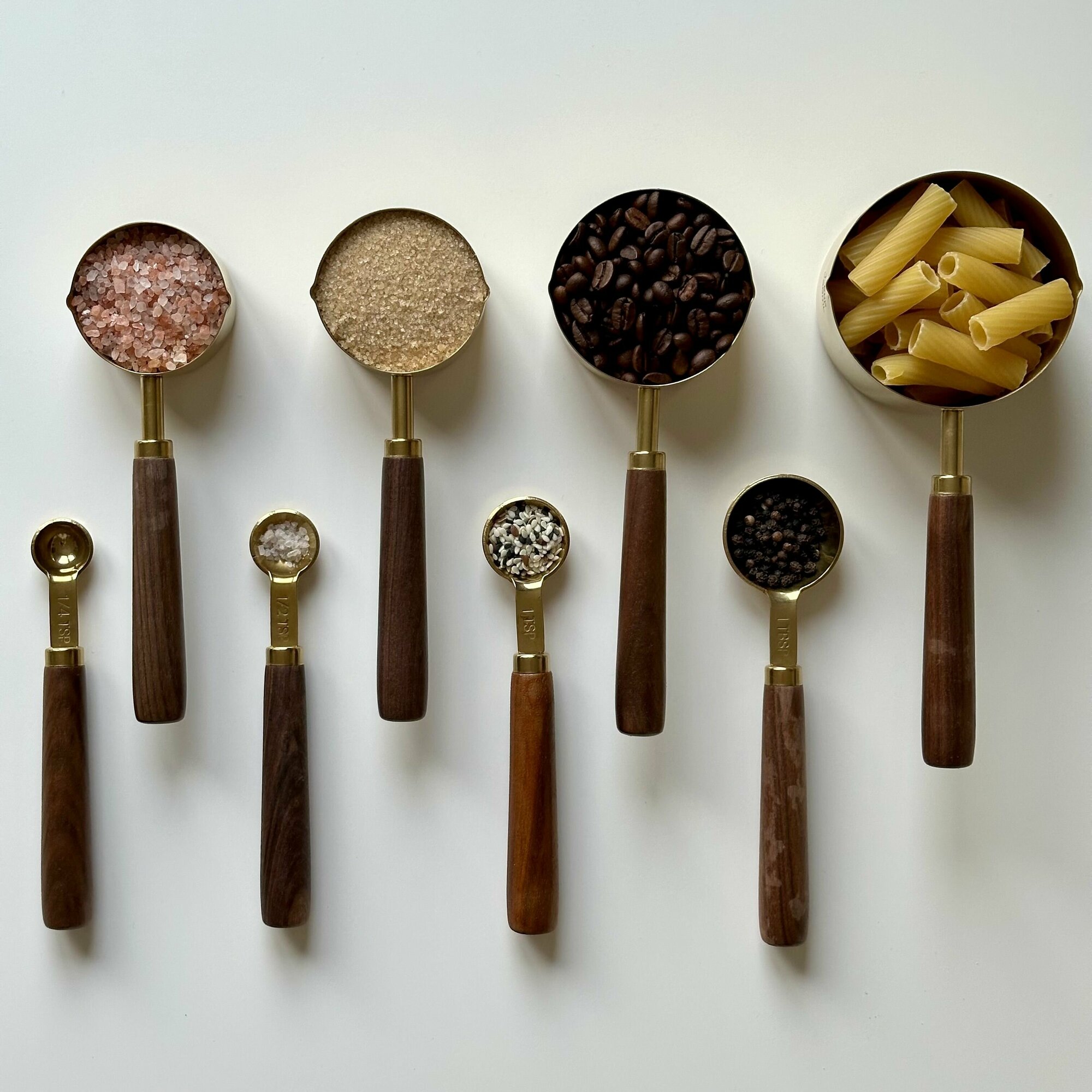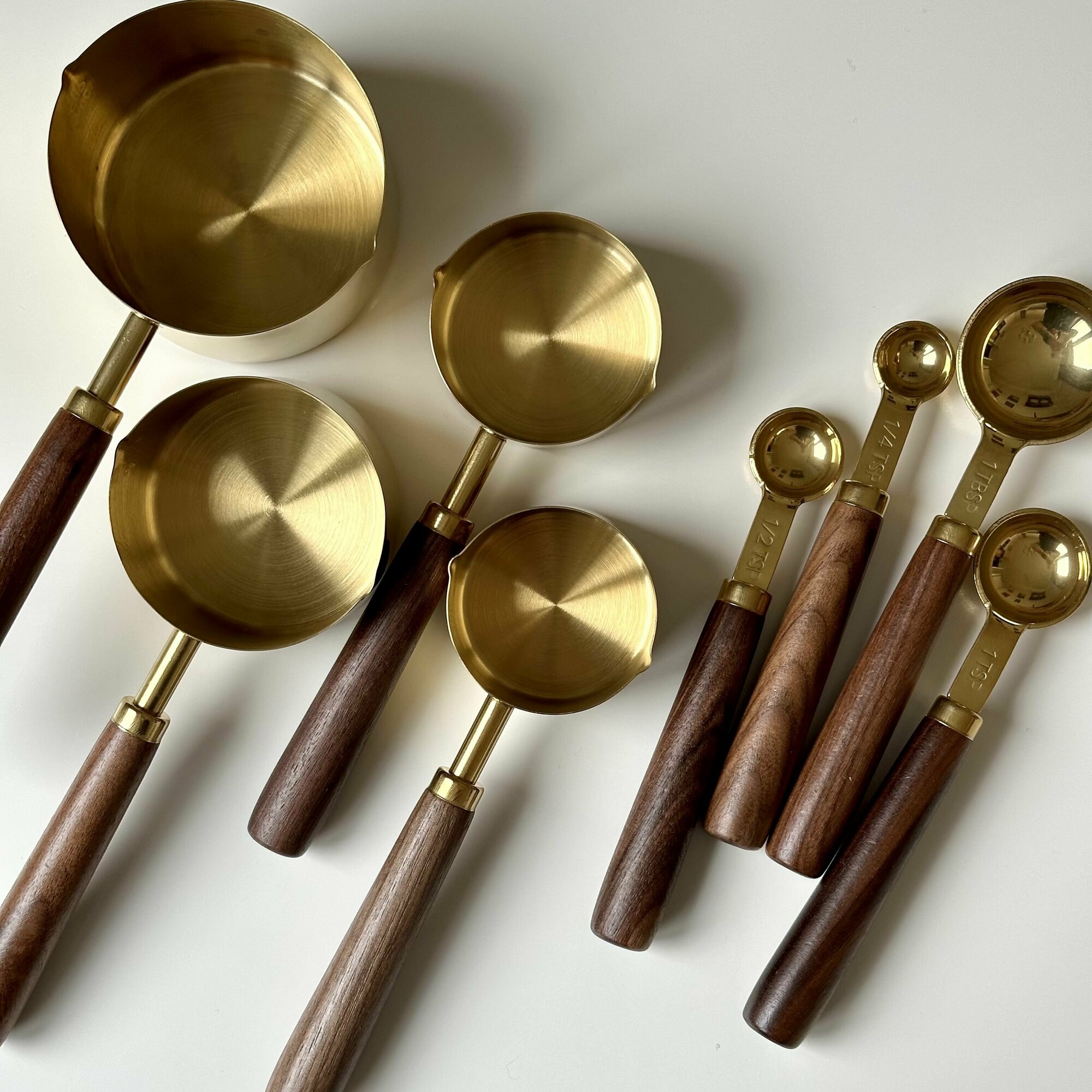 Купить Набор металлических золотых мерных емкостей / чашек / ложек в гр мл 8 шт