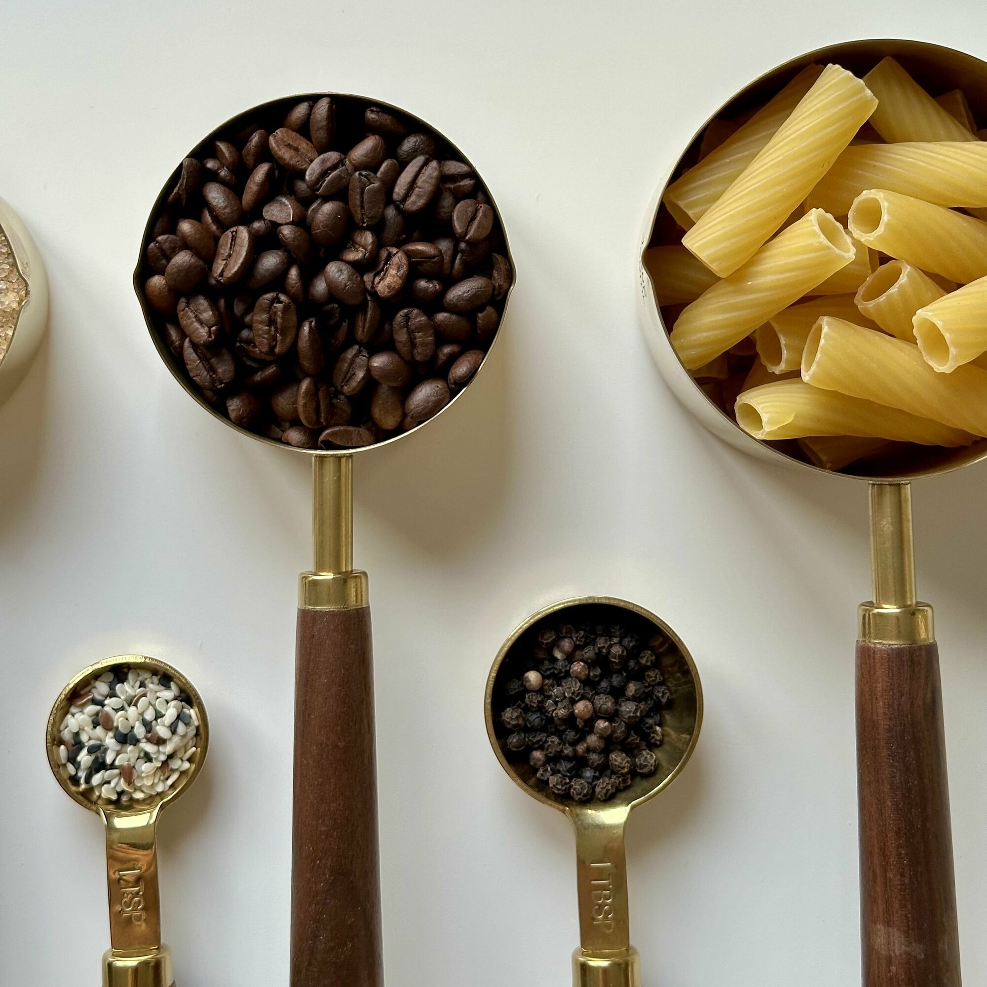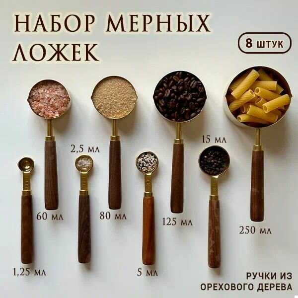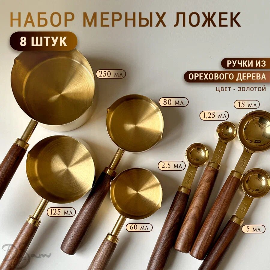 Набор металлических золотых мерных емкостей / чашек / ложек в гр мл 8 шт интересное: