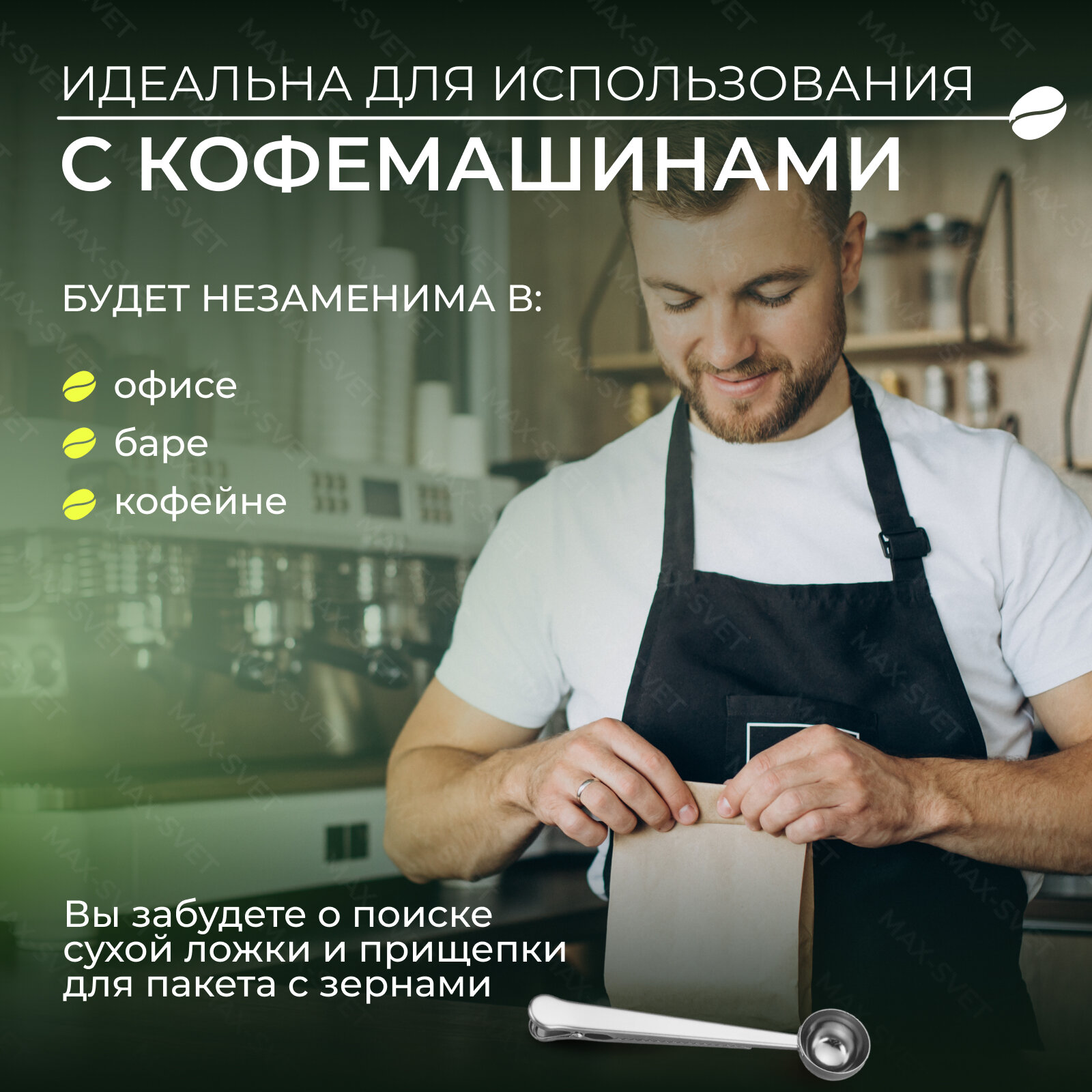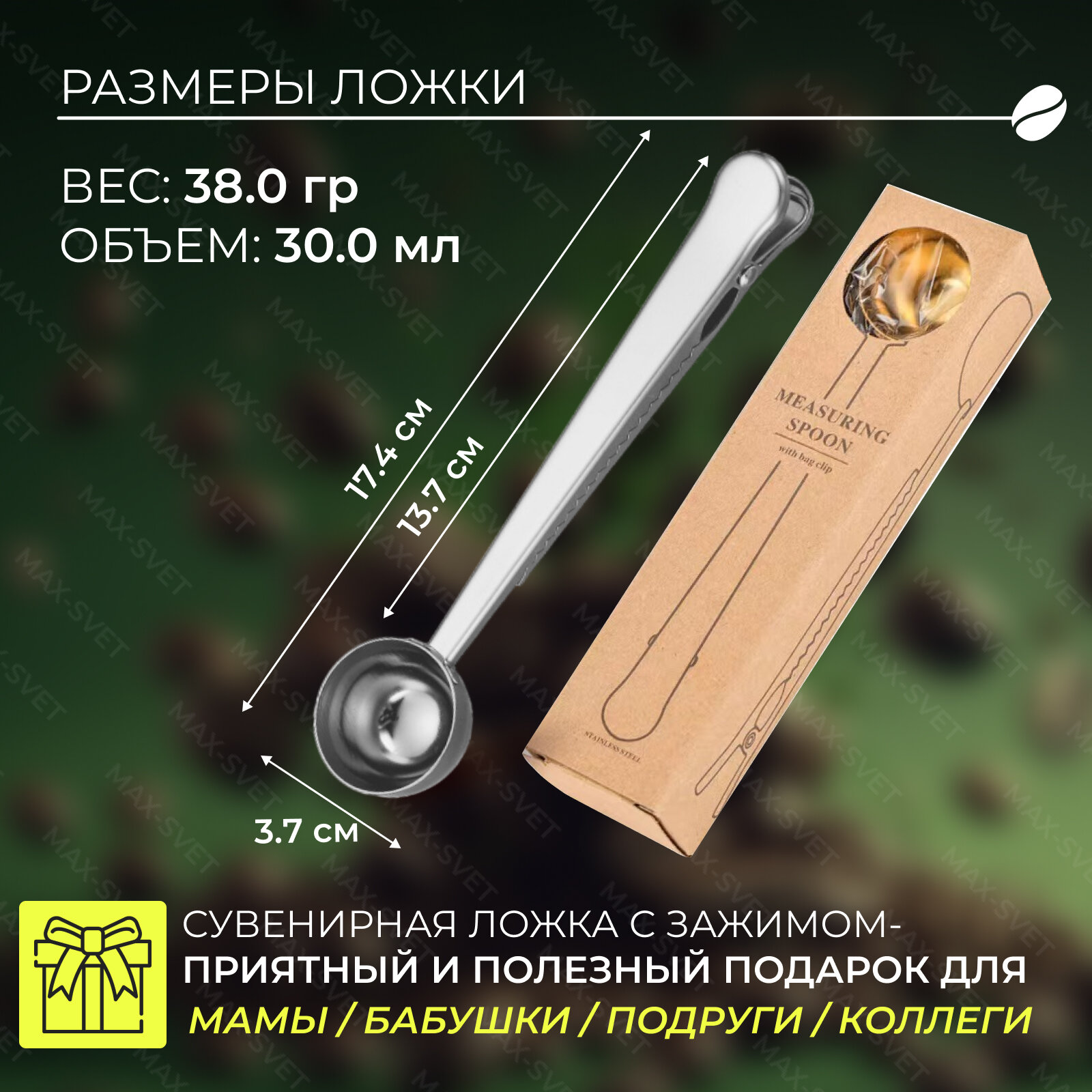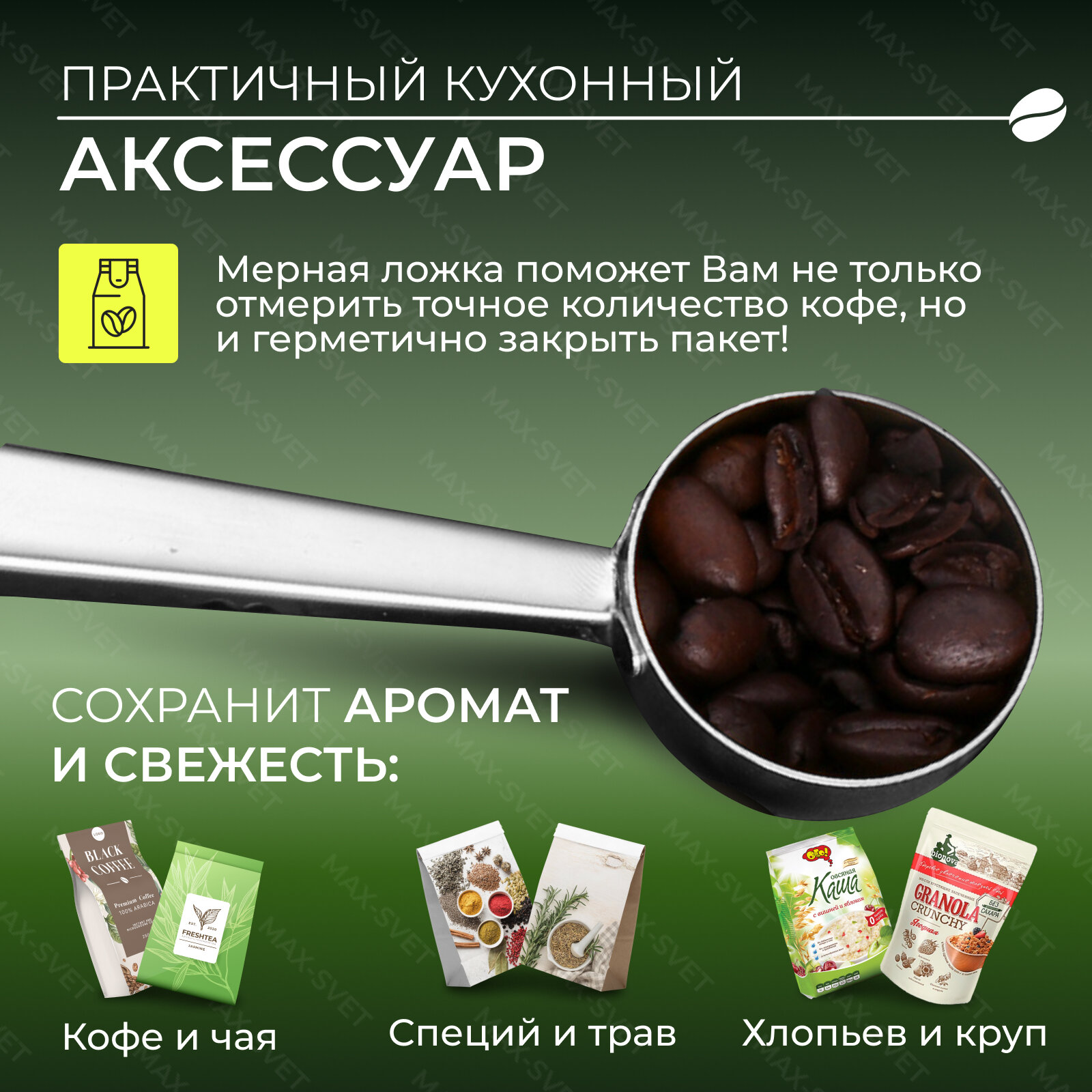 Мерная ложка-зажим для пакетов с кофе, чаем, какао и сыпучими продуктами, серебристая интересное: