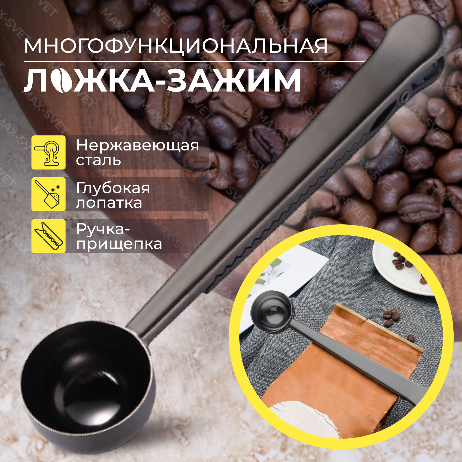 Мерная ложка-зажим для пакетов с кофе, чаем, какао и сыпучими продуктами, черная интересное:
