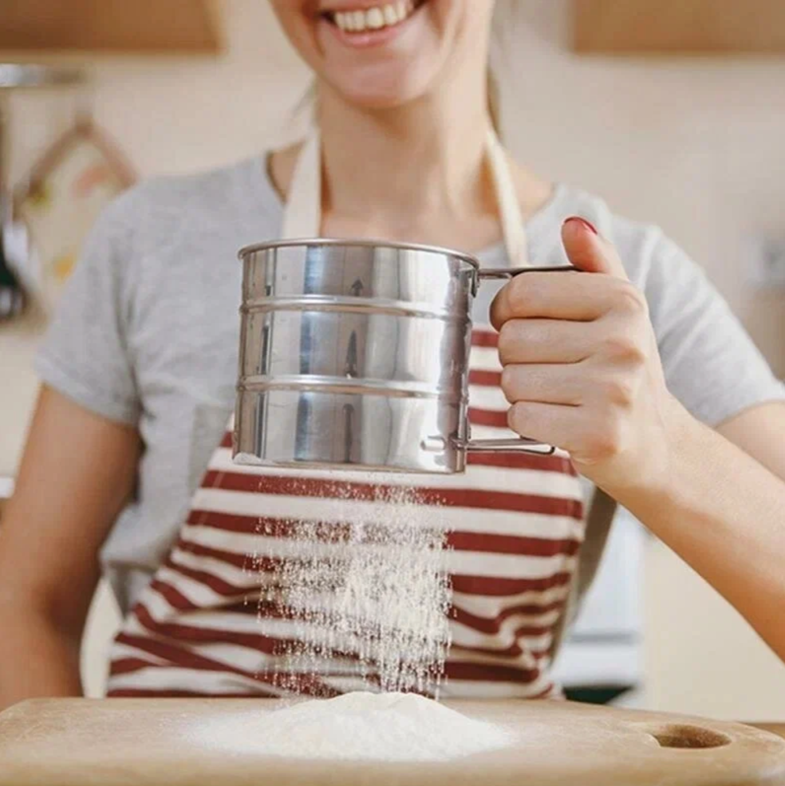 Сито дуршлаг металлическое с деревянной ручкой, диаметр 18 см.