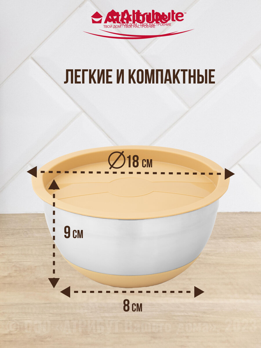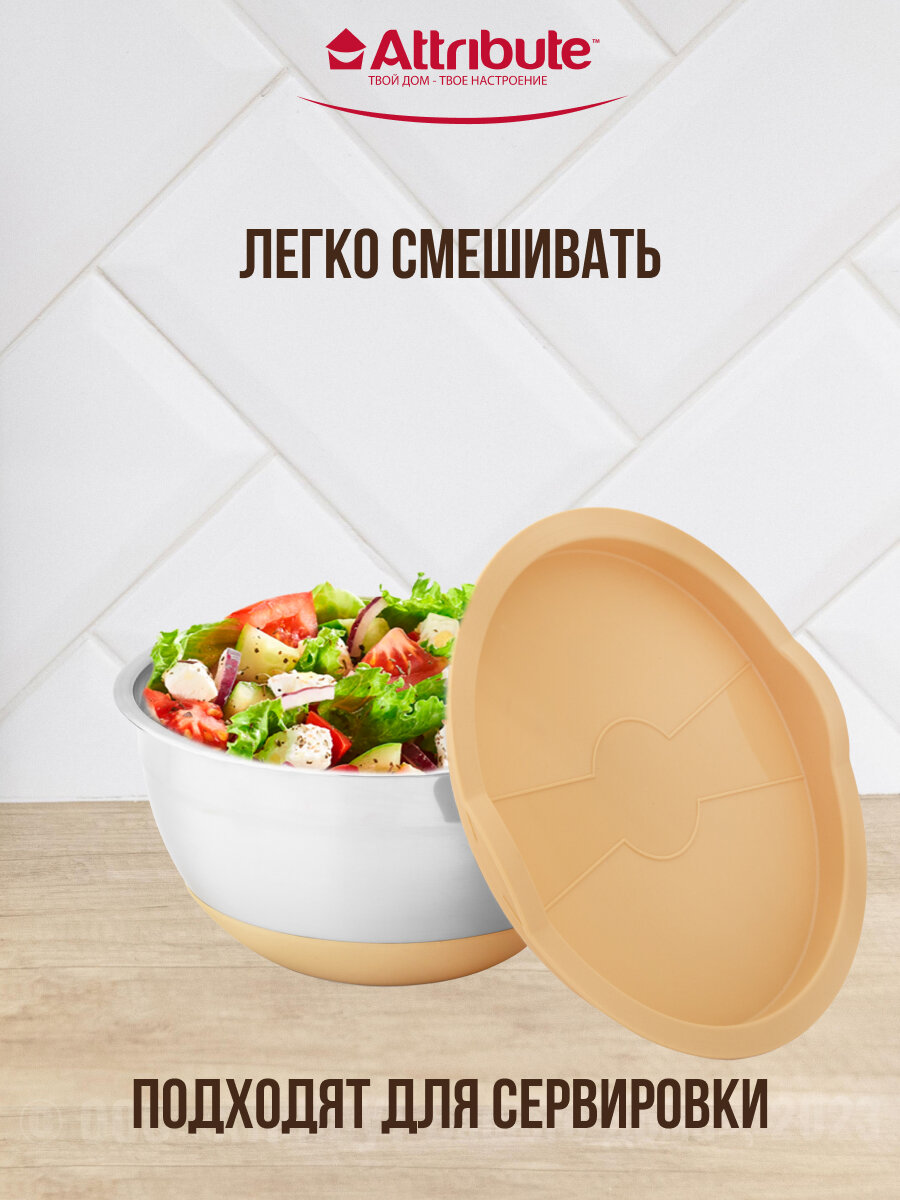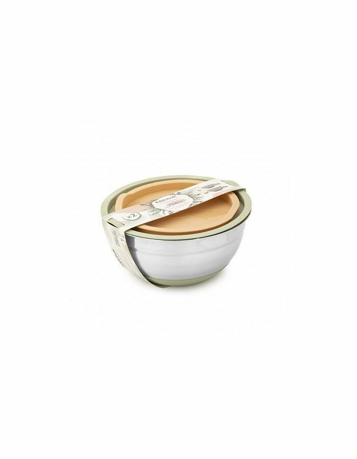 Миска, Kuchenland, 3/4,5 л, 2 шт, с крышкой, антискользящее дно, бежевая, Terra new