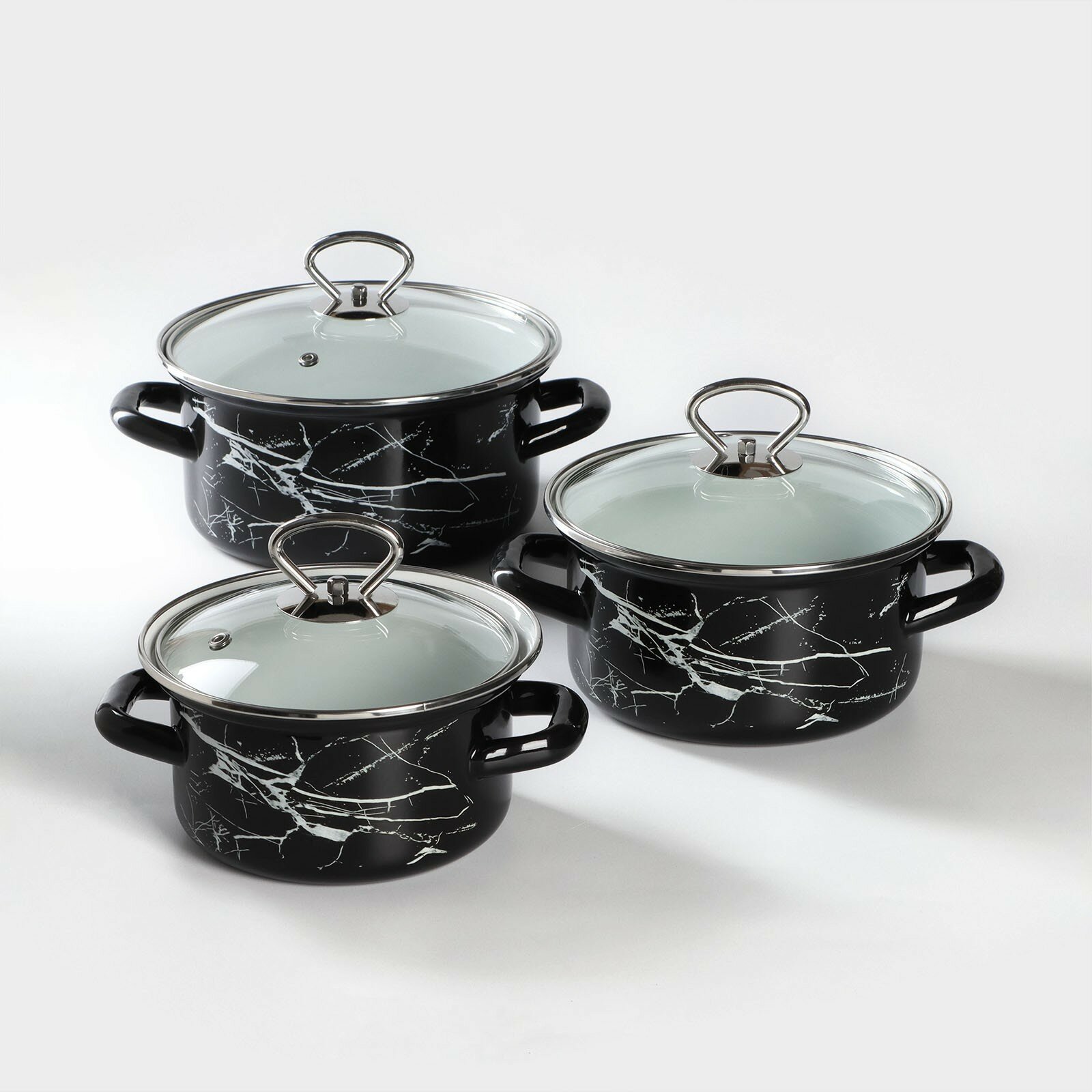 Набор кастрюль «Талисман», 3 предмета, стеклянные крышки, цвет чёрный