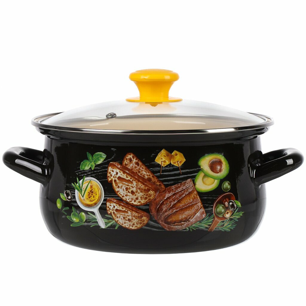Набор кастрюль эмалированных КМЗ Лимонный сет-1, 3 шт, с крышками