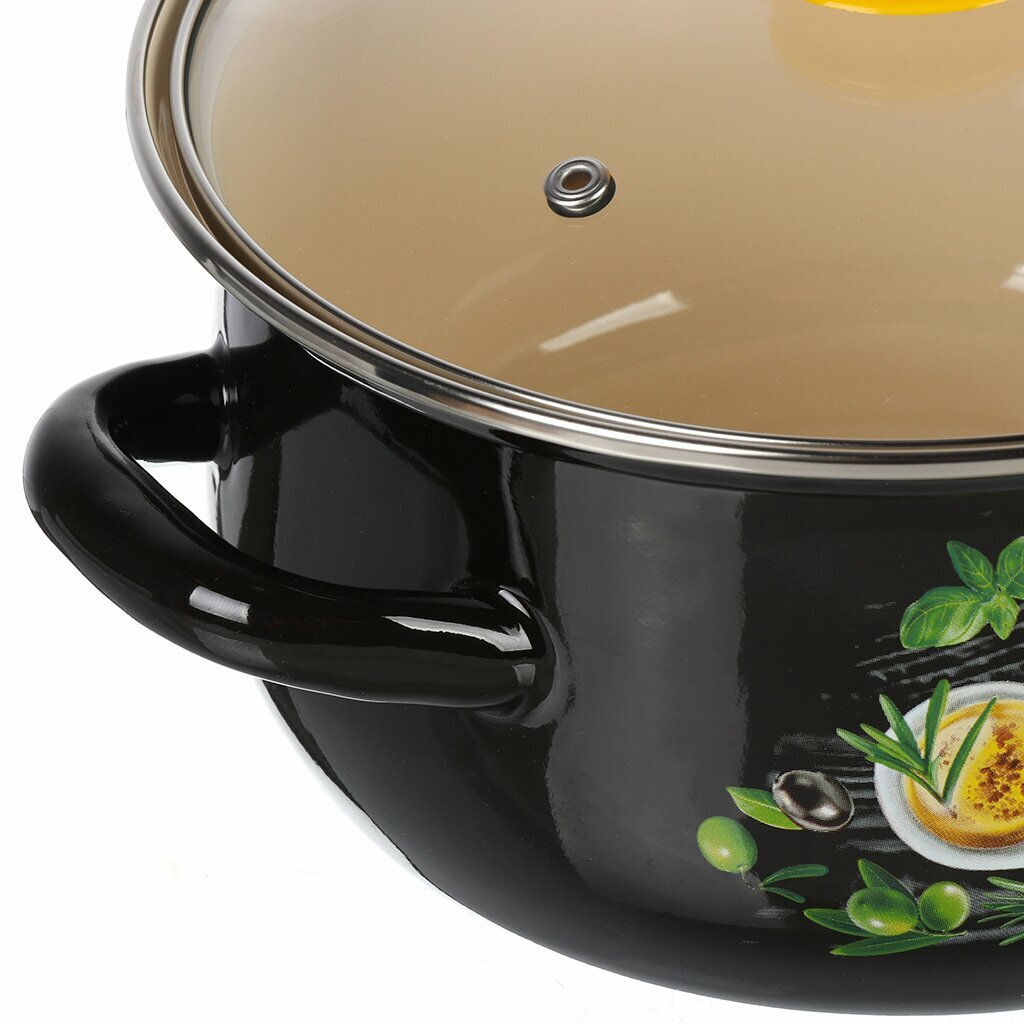 Набор кастрюль «Талисман», 3 предмета, стеклянные крышки, цвет чёрный