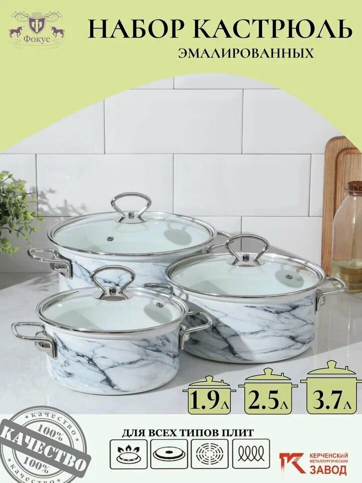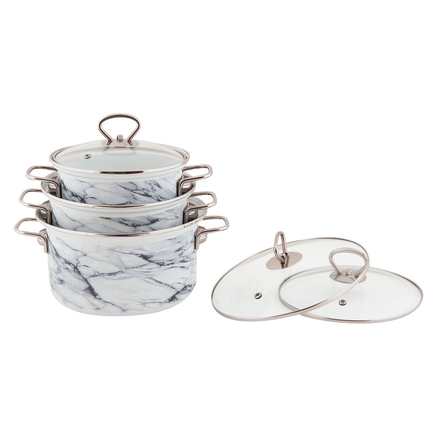 Купить Набор кастрюль Белый мрамор-1-Элит, 3 шт: 1,9 л, 2,5 л, 3,7 л