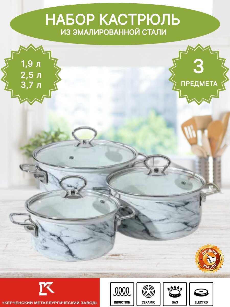 СохранитьНабор кастрюль Белый мрамор-1-Элит, 3 шт: 1,9 л, 2,5 л, 3,7 л интересное: