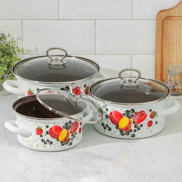 Набор кастрюль эмалированных 3 пр, 2л + 4л + 6л Керченская эмаль
