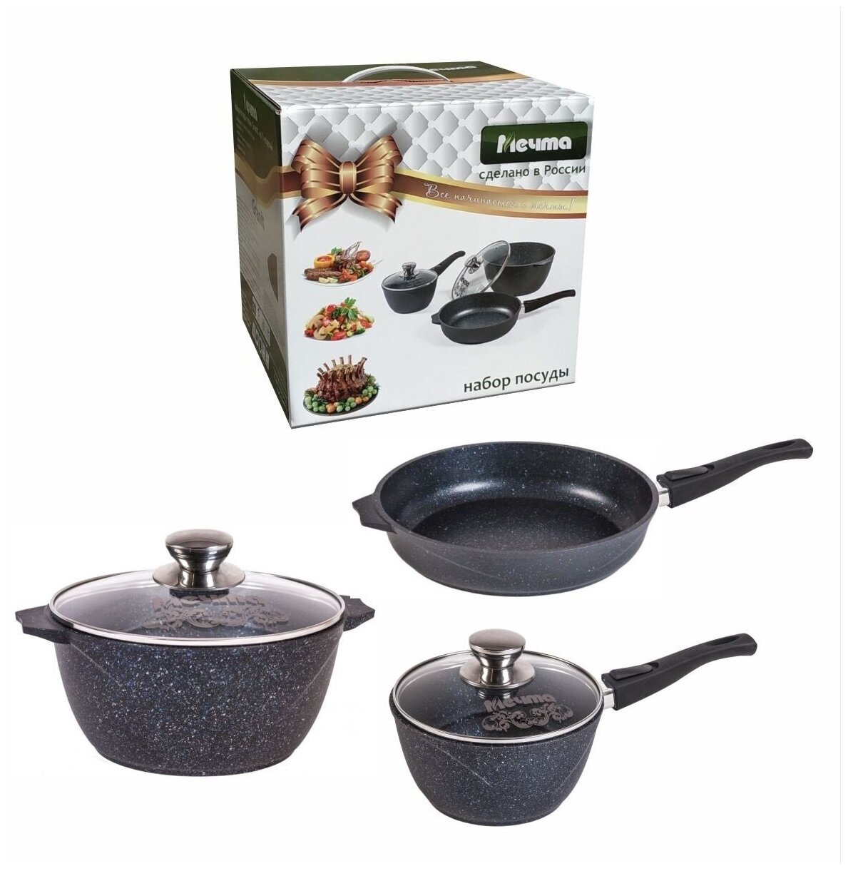 Набор посуды Мечта Посуда Мечта №1 Гранит: сковорода, кастрюля, ковш (001701)
