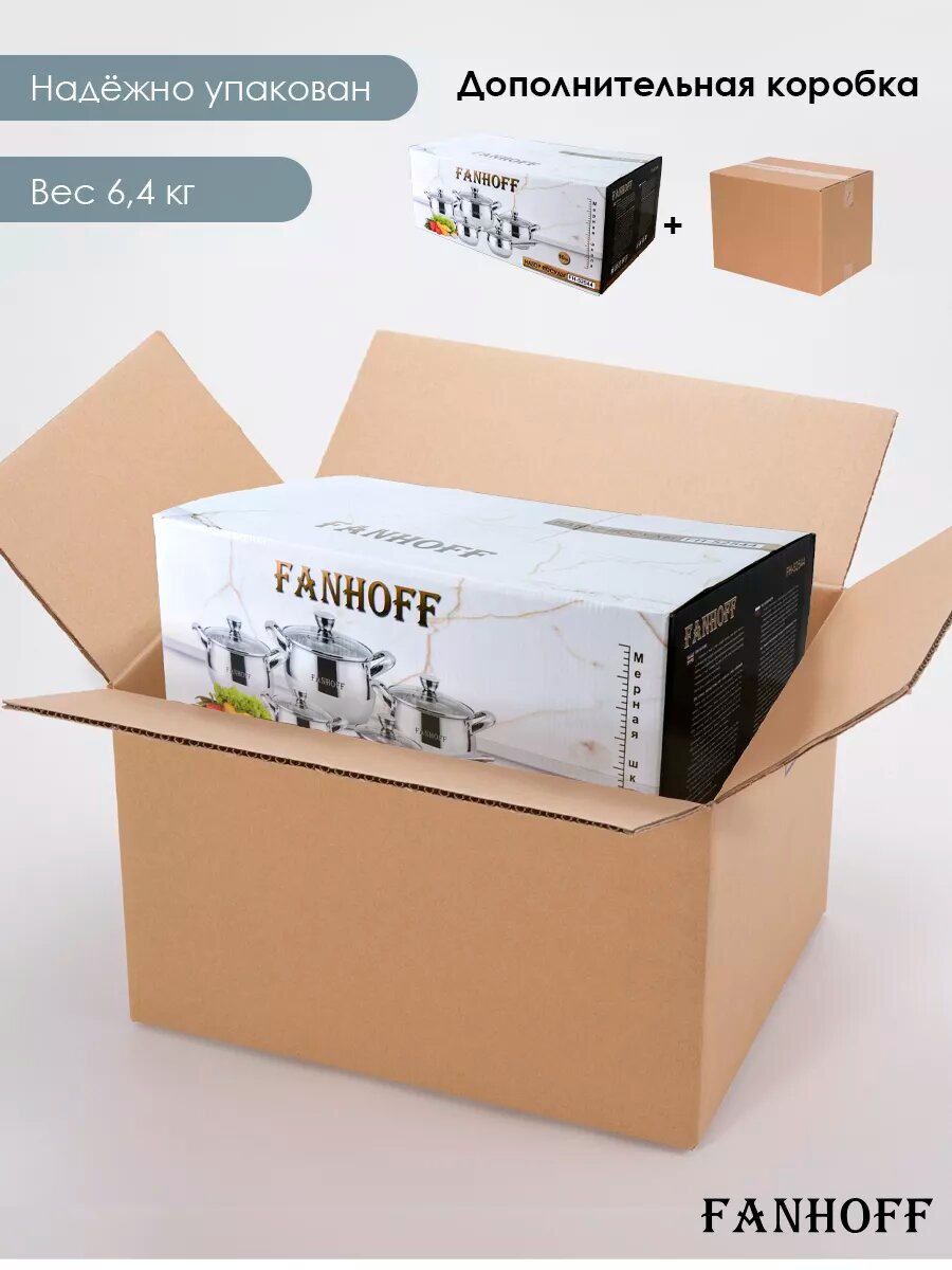 Набор посуды FANHOFF из нержавеющей стали с крышками, 12 предметов