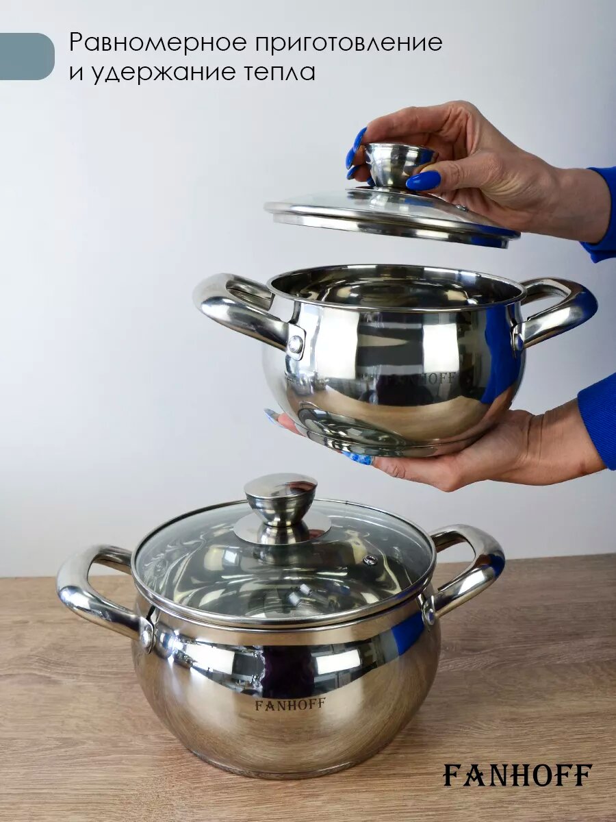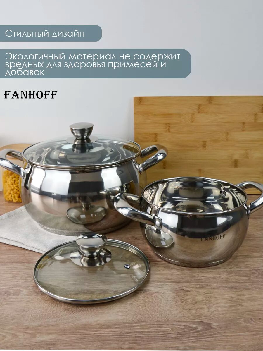 Набор кастрюль FANHOFF из нержавеющей стали с крышками, 6 предметов