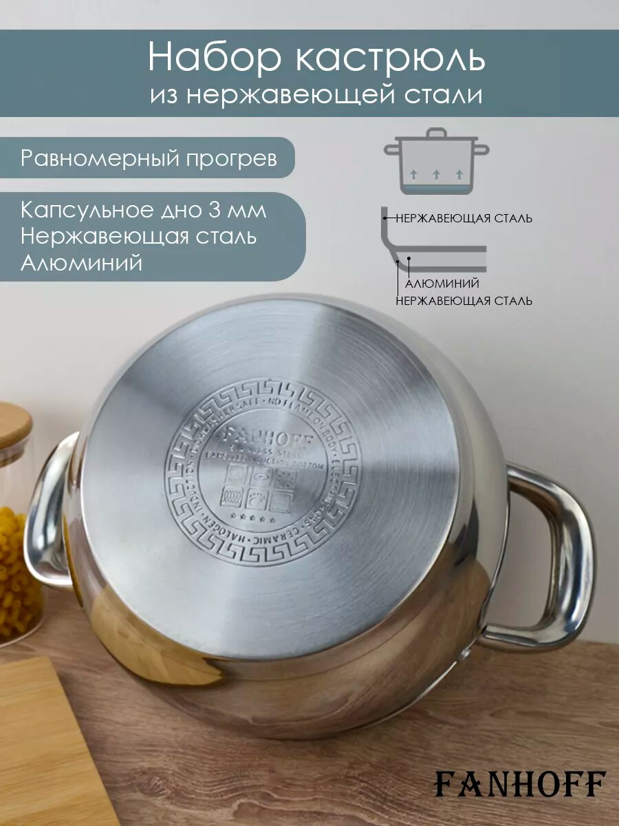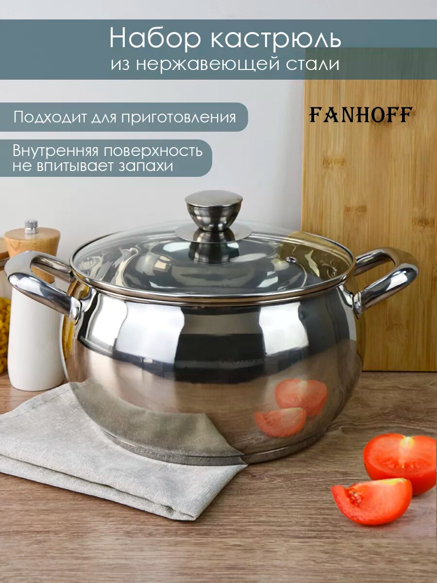 Набор кастрюль FANHOFF из нержавеющей стали с крышками, 6,7 л, 4 л, 3 л