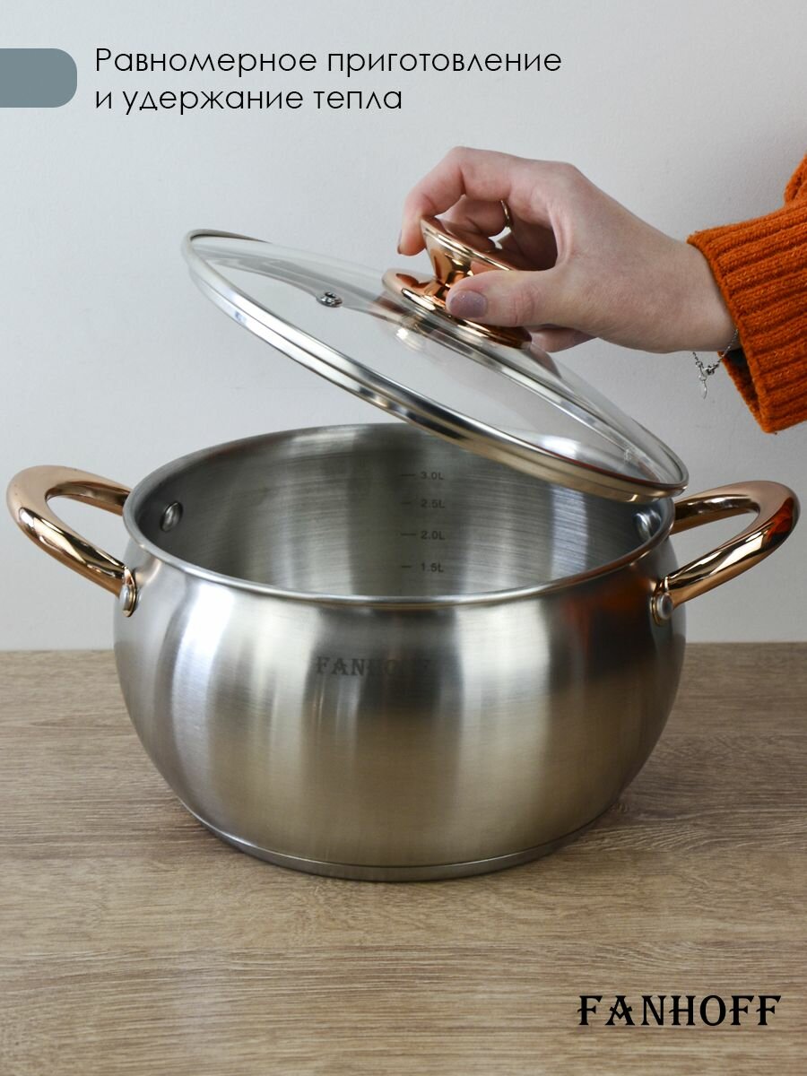 Набор кастрюль FANHOFF из нержавеющей стали с крышками, 4 л, 3 л, 2,2 л
