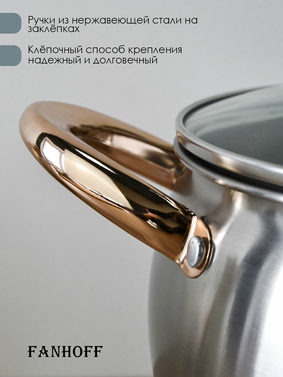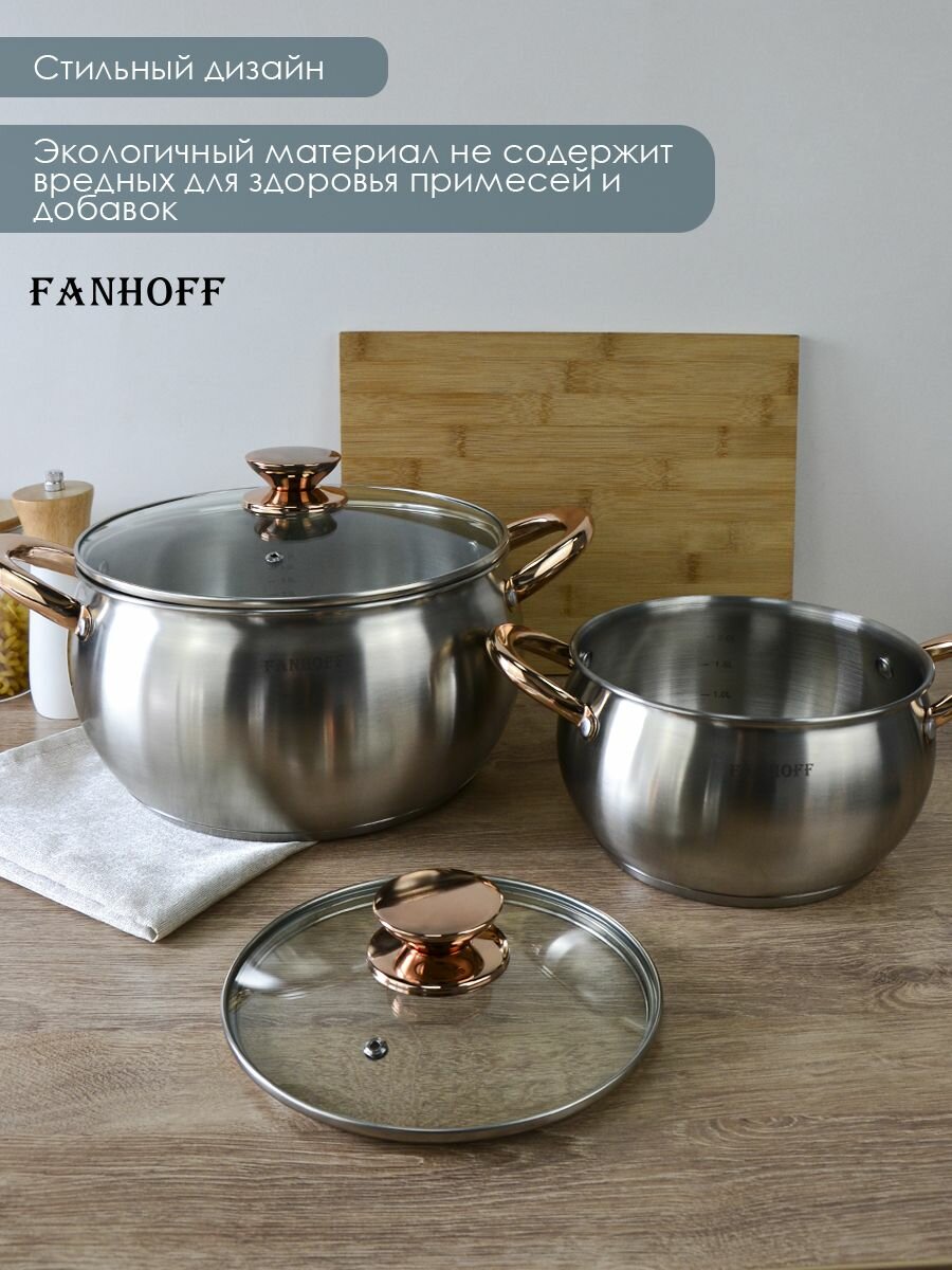 Набор кастрюль FANHOFF из нержавеющей стали с крышками, 6 предметов