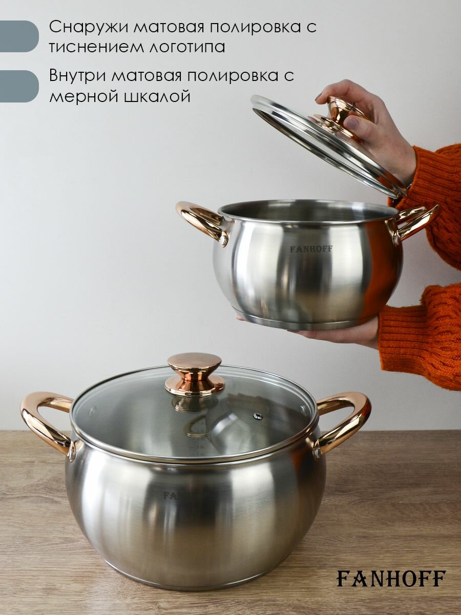 Набор посуды FANHOFF из нержавеющей стали с крышками, 12 предметов