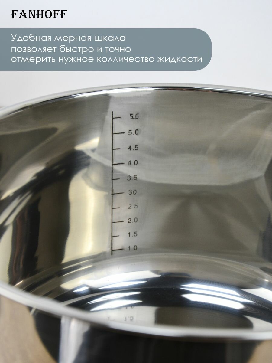 Набор кастрюль FANHOFF из нержавеющей стали с крышками, 6 предметов