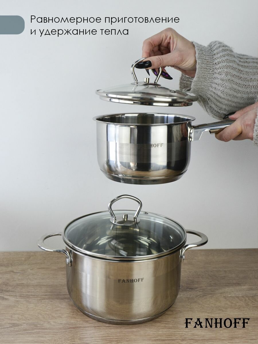 Набор посуды FANHOFF из нержавеющей стали с крышками, 12 предметов