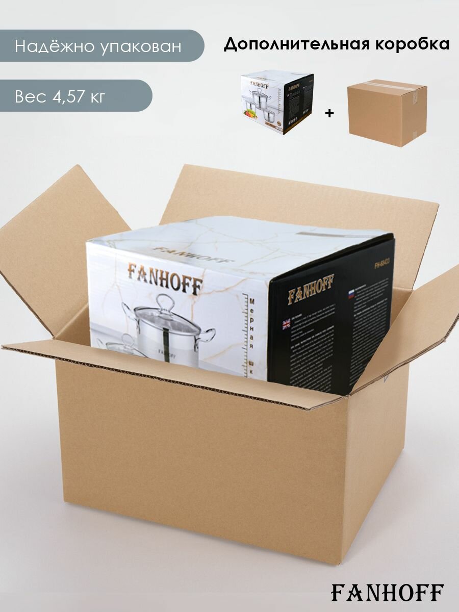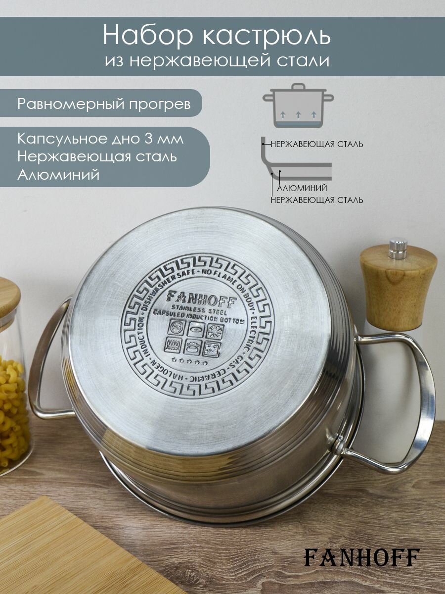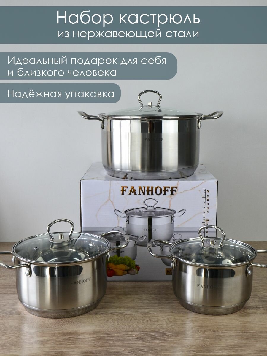 Набор кастрюль FANHOFF из нержавеющей стали с крышками, 6,7 л, 4 л, 3 л