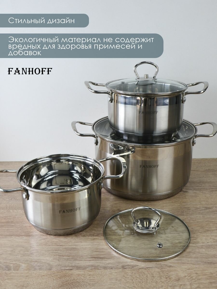 Набор кастрюль FANHOFF из нержавеющей стали с крышками, 6 предметов
