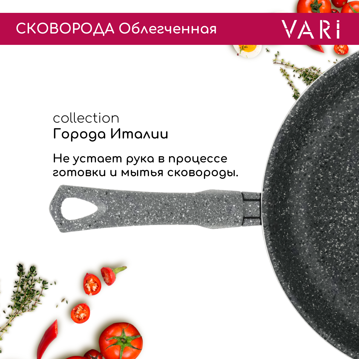 Сковорода с антипригарным покрытием VARI "Города Италии" черный гранит, 28 см интересное: