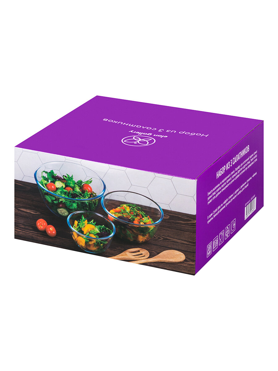 | Дополнительная информация | Набор 3 салатников "Crystal glass" - 13х13х7 см 500 мл, 15х15х8 см 800 мл, 17х17х9 см 1050 мл, стекло жаропрочное |
