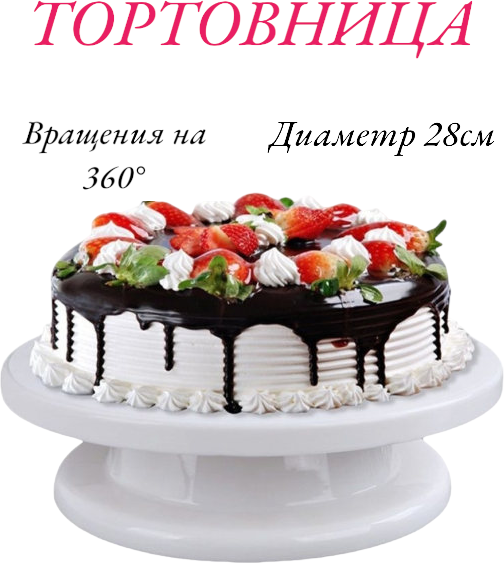 | Дополнительная информация | вращающаяся подставка для торта выполнена из качественного пищевого пластика; тортовница предназначена для изготовления кулинарных произведений, декорирования торта и для украшения праздничного стола |