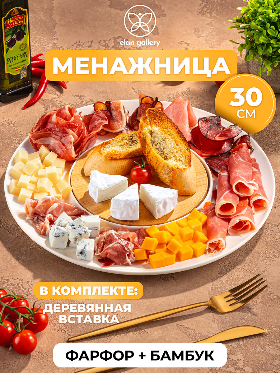 Менажница 30х30х2 см Elan Gallery Айсберг с деревянной вставкой интересное: