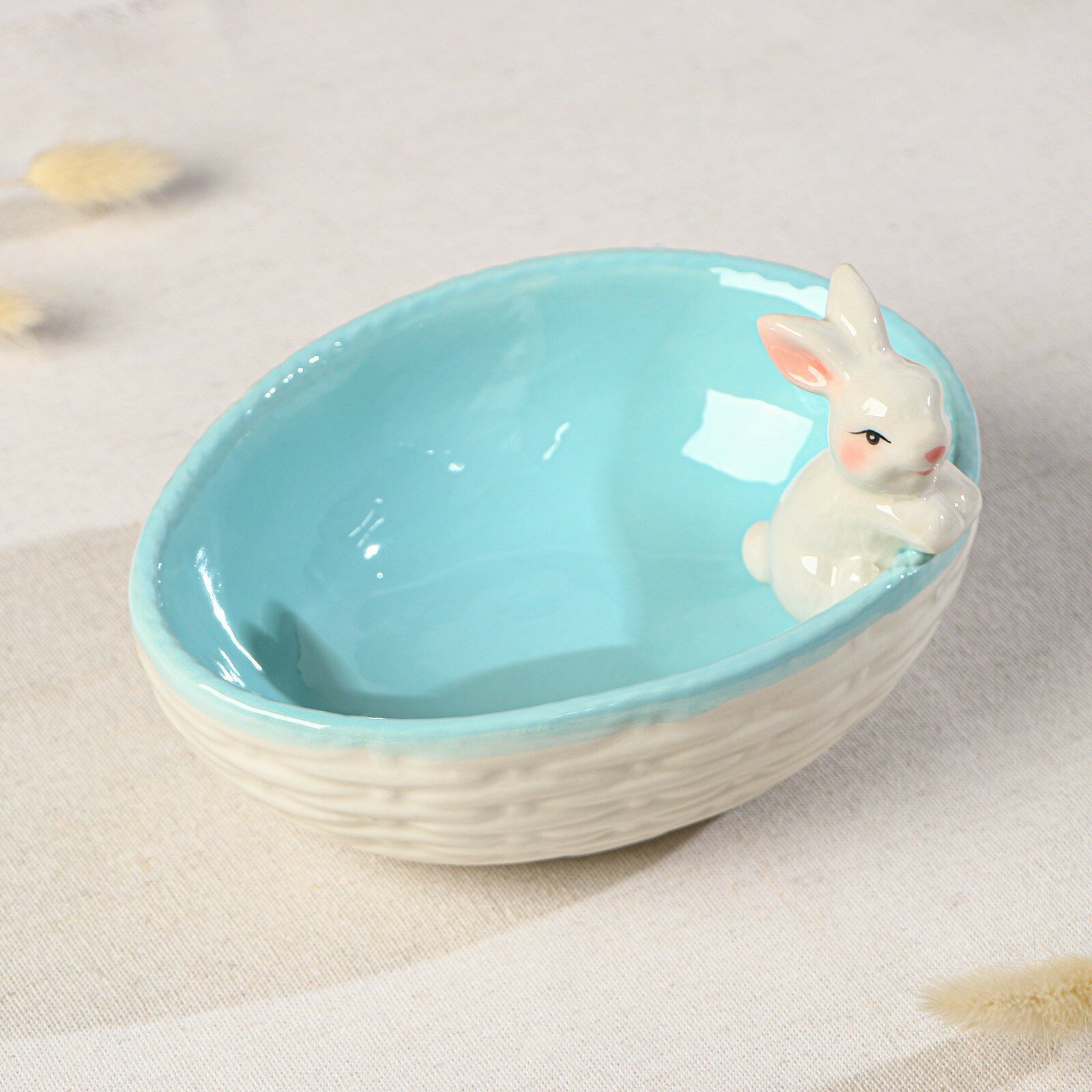 Салатник для сервировки стола глубокий, керамический Доляна «Зайка», 18×14×11 см