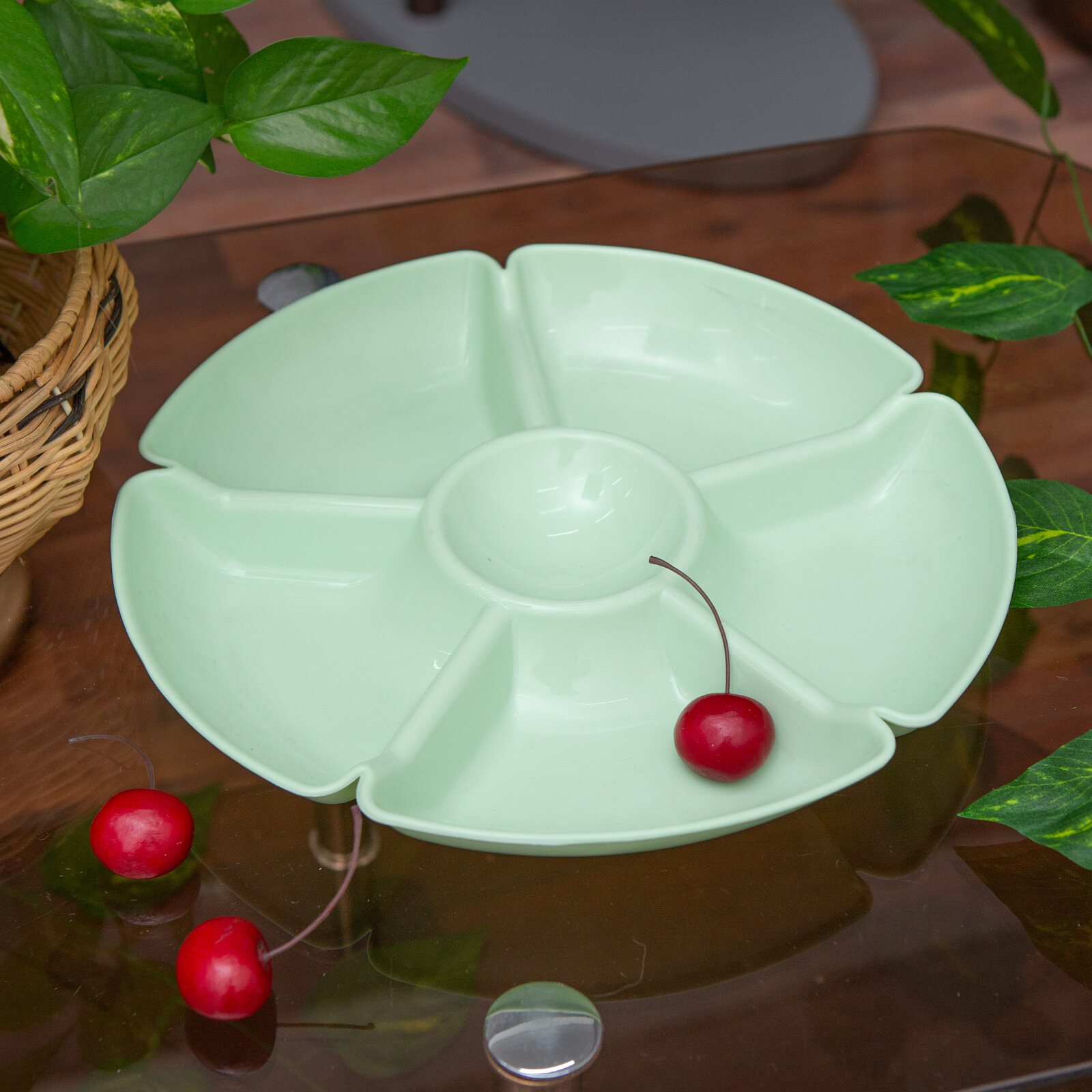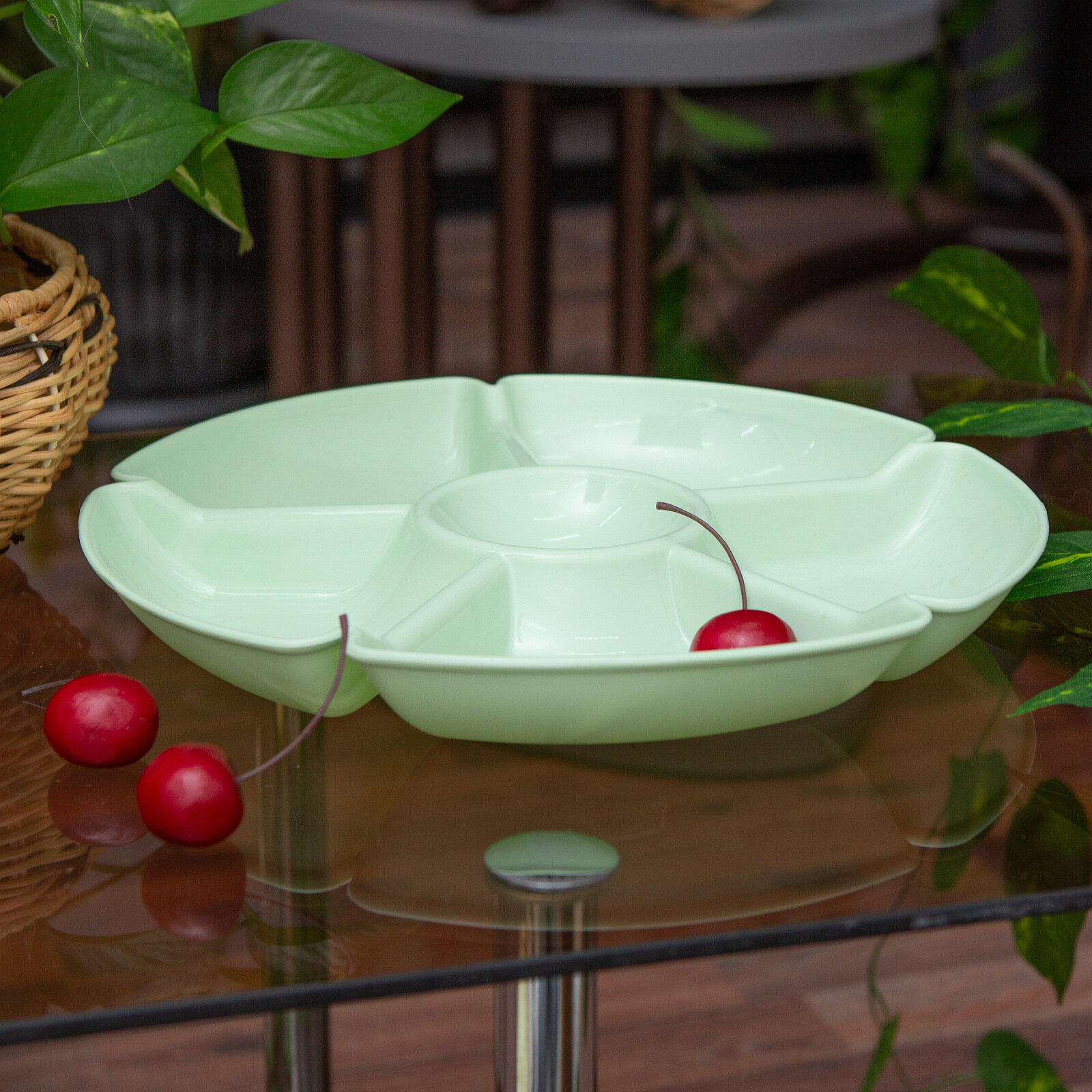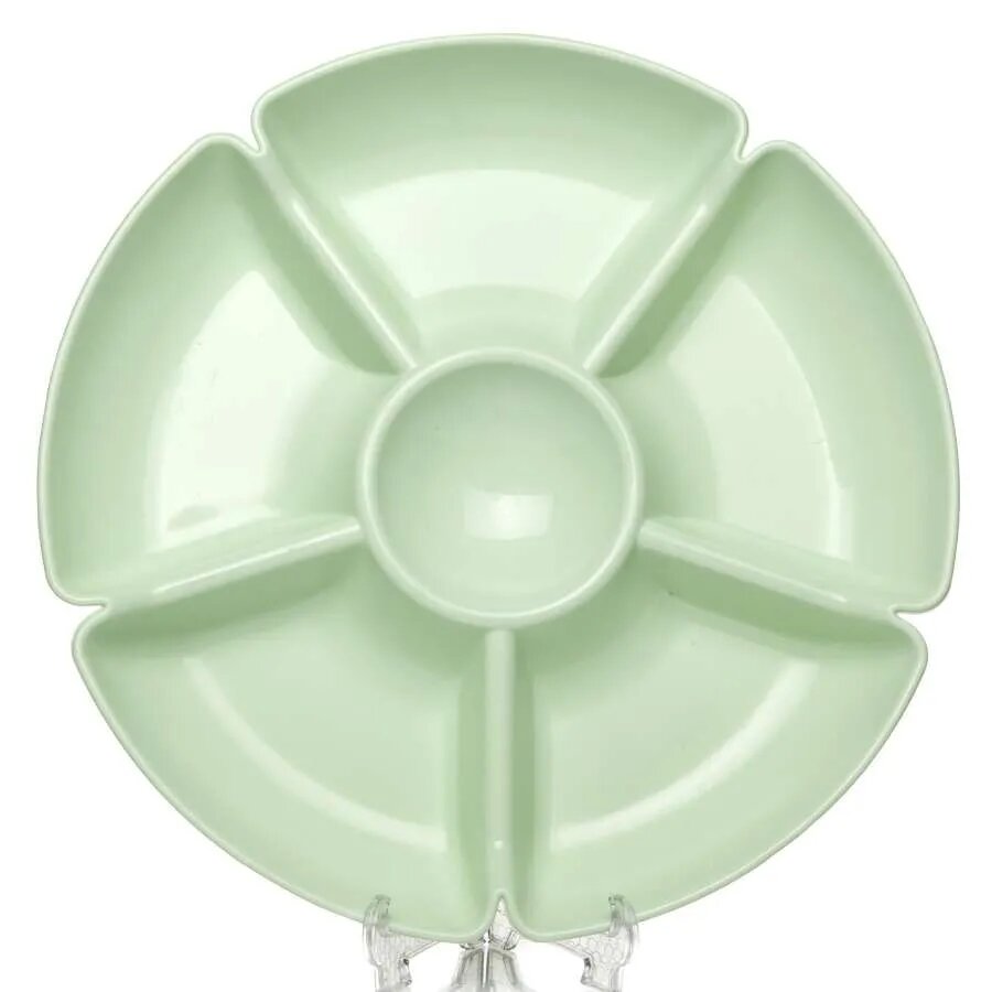 Менажница Gotoff круглая 27 см, пластик 6 секций, цвет зеленый интересное:
