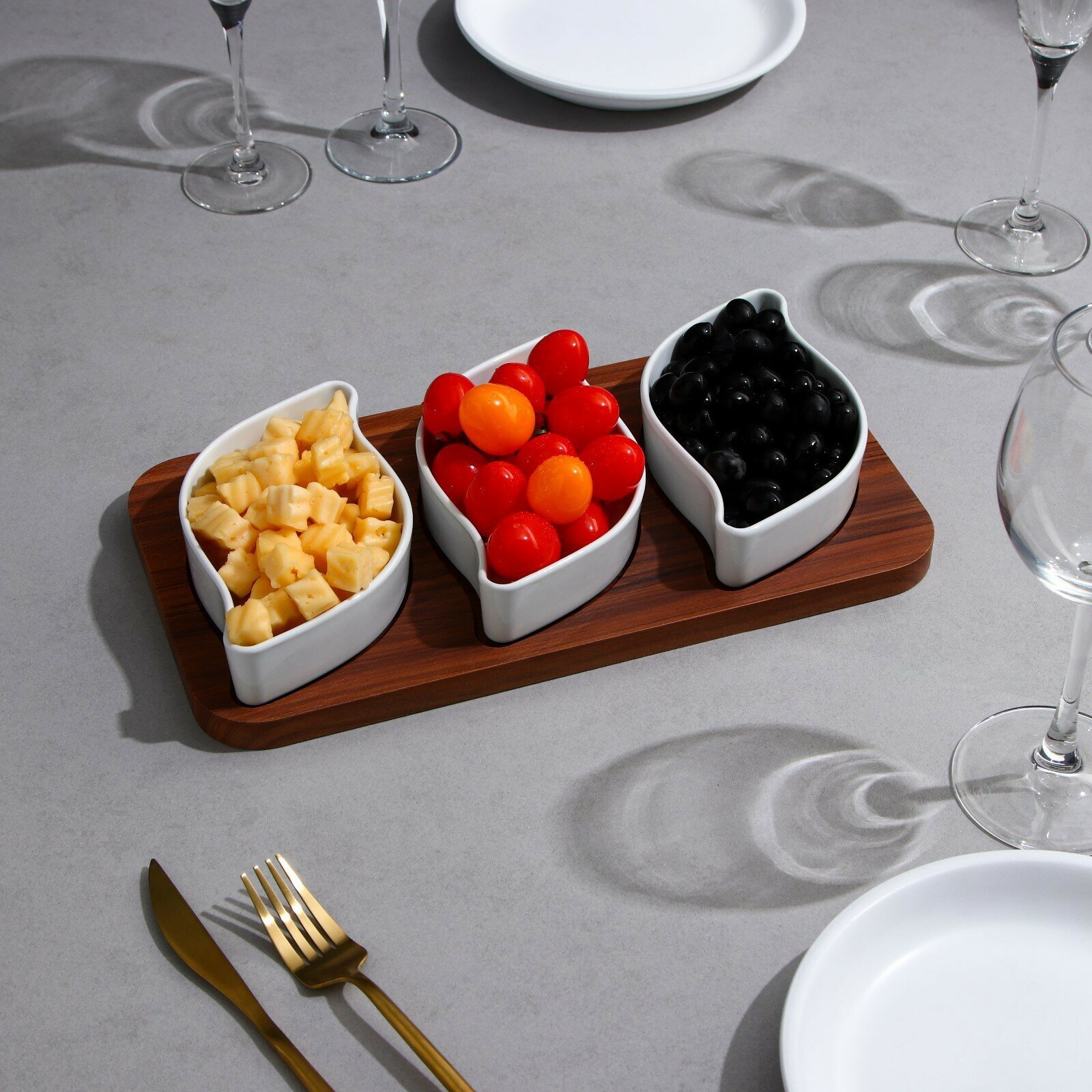Менажница «Листья», 5 шт:150 мл, деревянное основание, фарфор, Иран