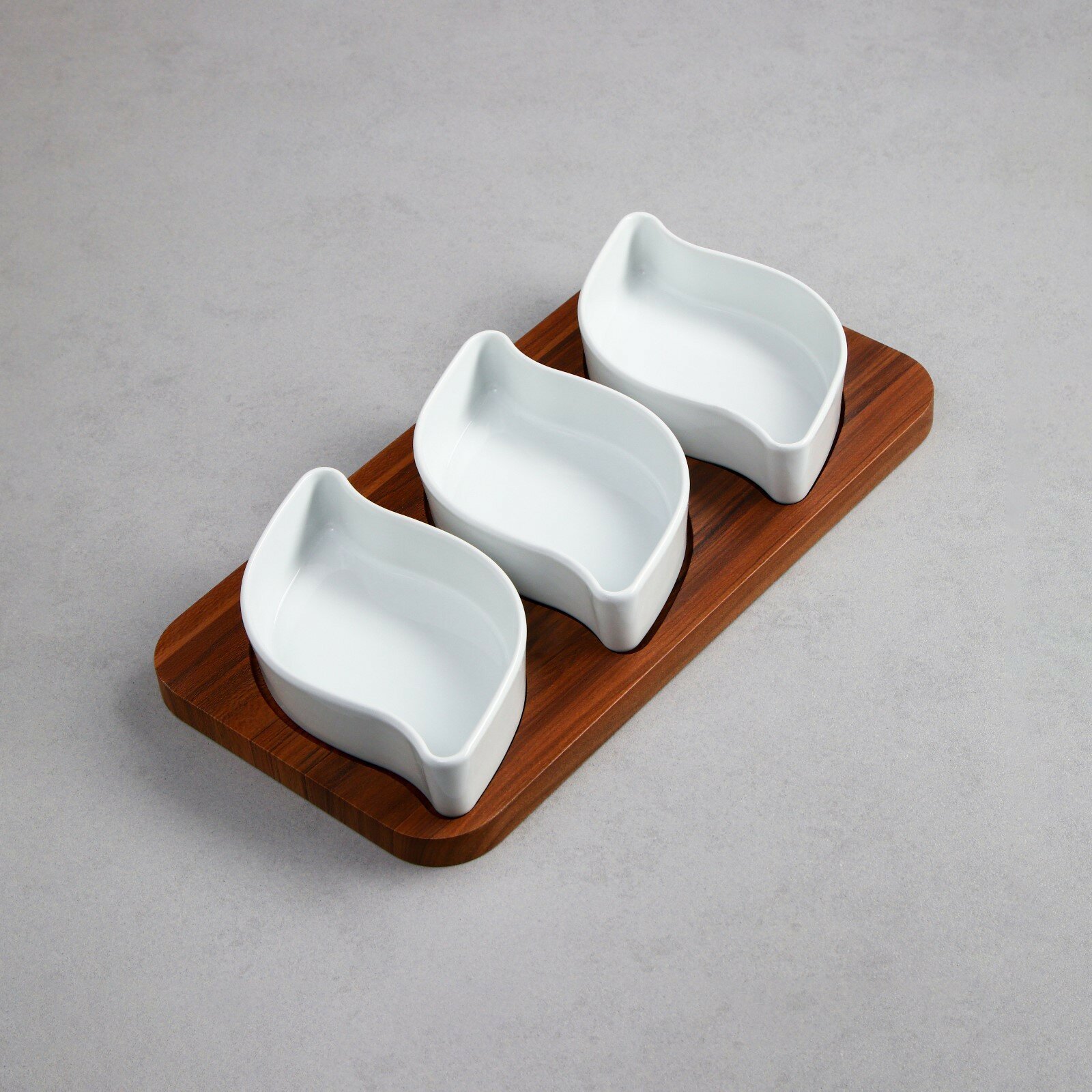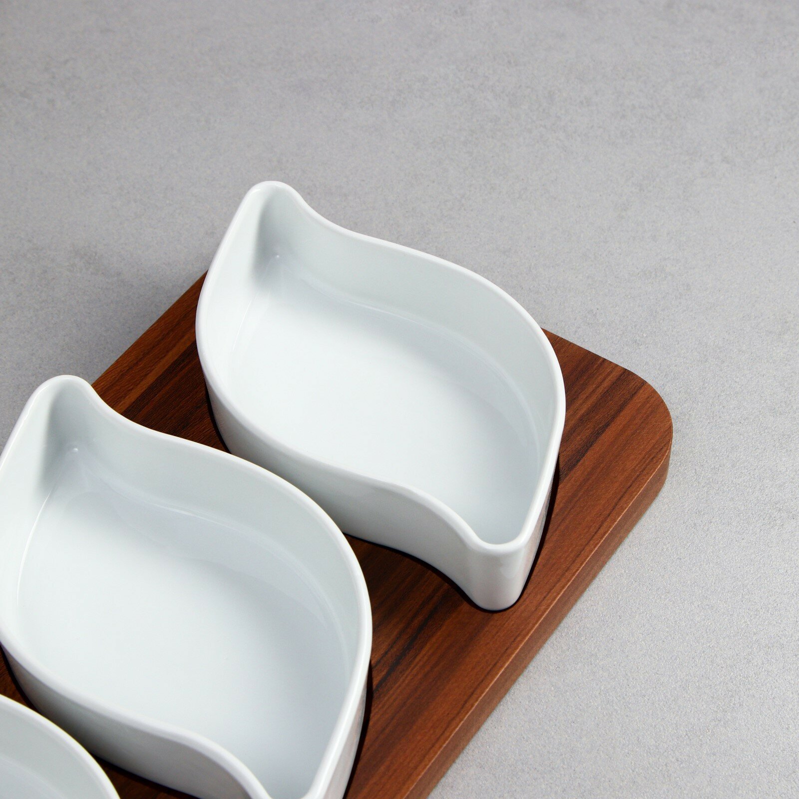 Менажница «Листья», 5 шт:150 мл, деревянное основание, фарфор, Иран