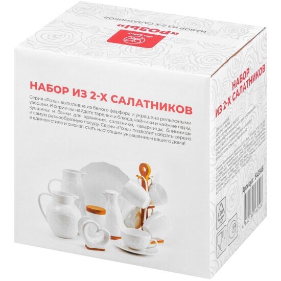 | Дополнительная информация | Набор круглых салатникоа "Розы" 2 предмета 14х14х6,3 см, 600 мл - каждый |