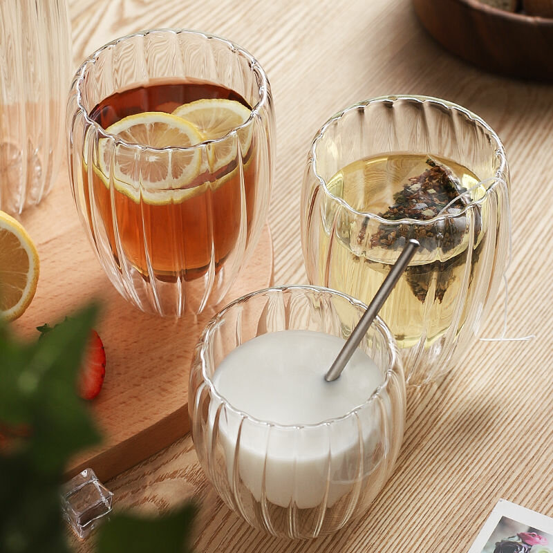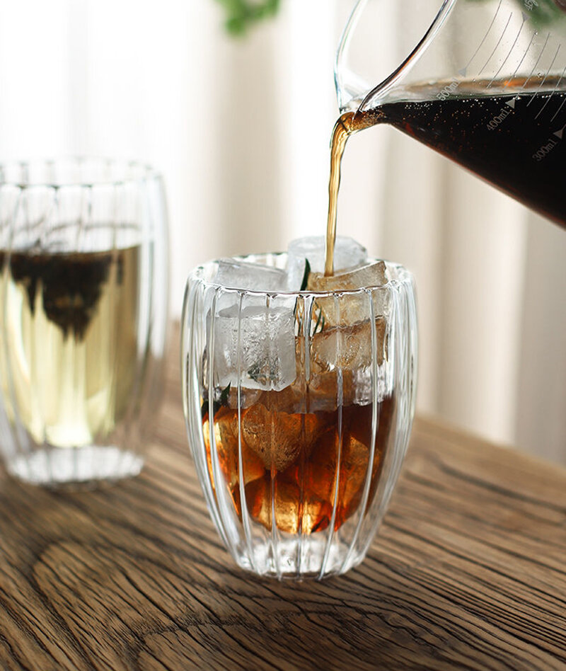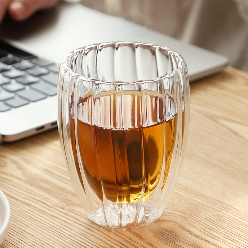 Купить Рифленые стеклянные стаканы с двойными стенками, 4 штуки, объем - 300 мл