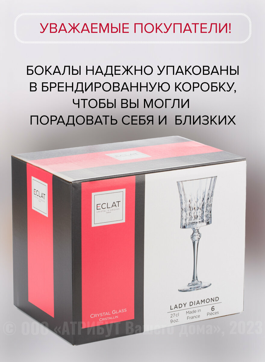 Набор фужеров (бокалов) для вина леди даймонд 270мл 6шт, ECLAT CDA PARIS