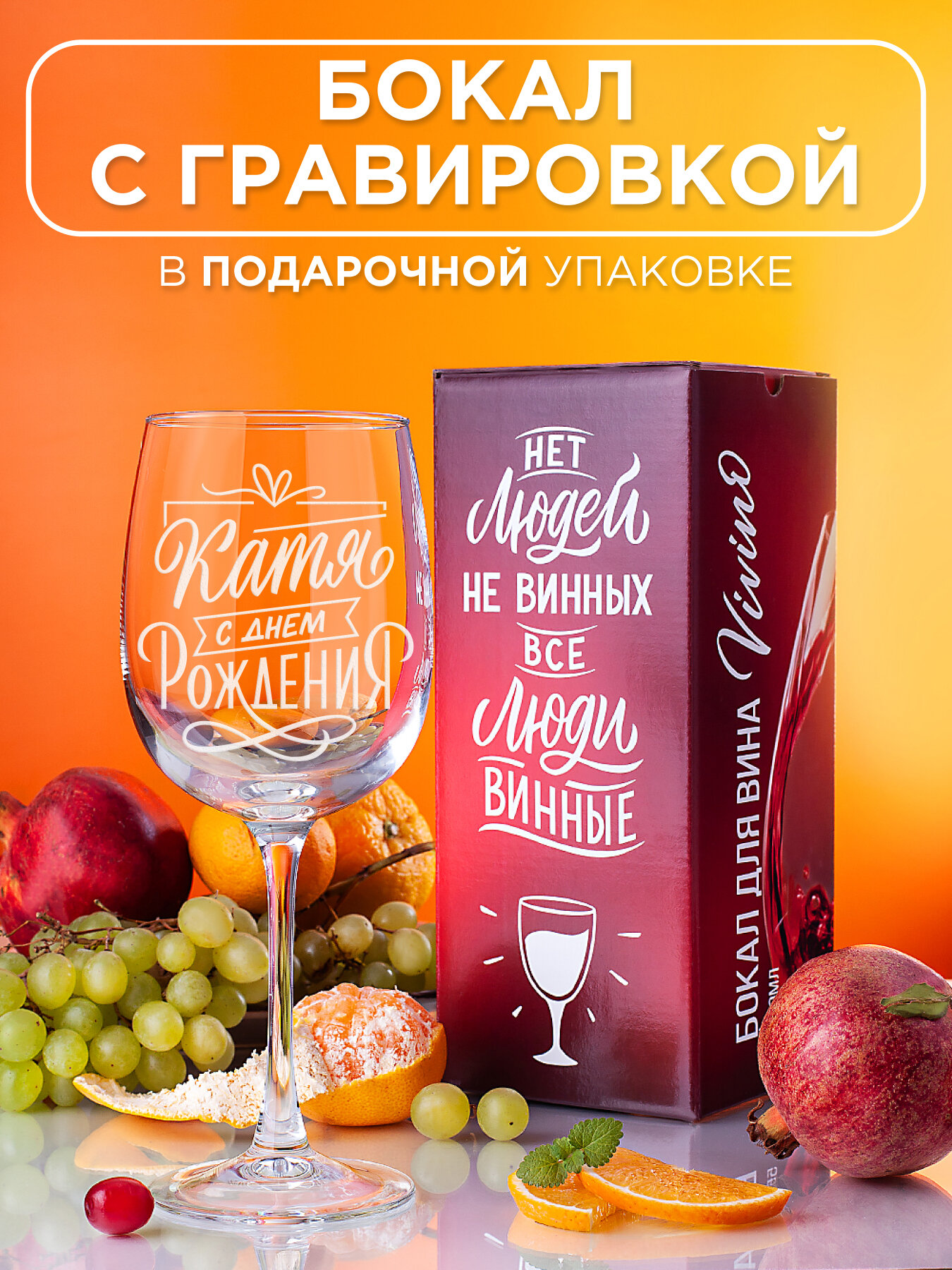 СохранитьБокал для вина с гравировкой Катя с днем рождения Подарок подруге маме девушке женщине на день рождения Фужер для вина бокал с надписью. интересное: