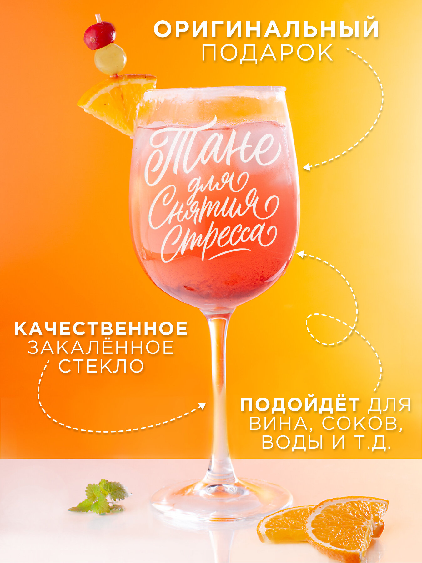 СохранитьБокал для вина с гравировкой Тане для снятия стресса Подарок подруге маме девушке женщине на день рождения Фужер для вина бокал с надписью. интересное: