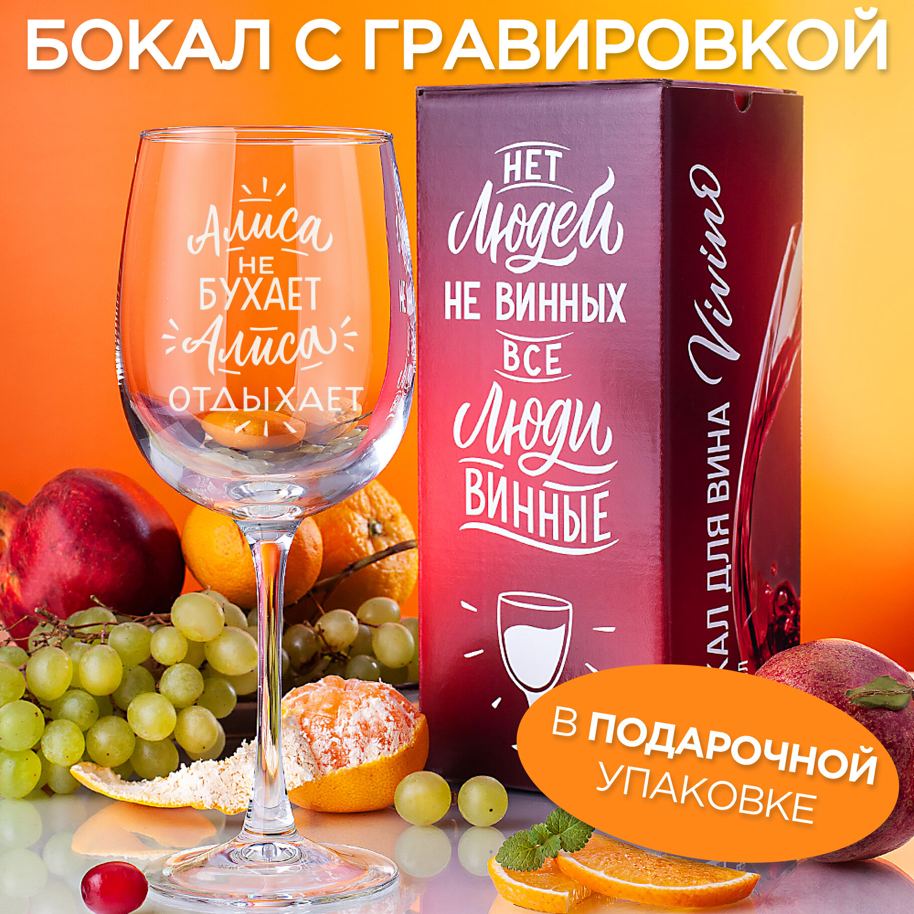 Купить Бокал для вина с гравировкой Алиса не бухает Алиса отдыхает Подарок подруге маме девушке женщине сестре коллеге на день рождения 14 февраля 8 марта