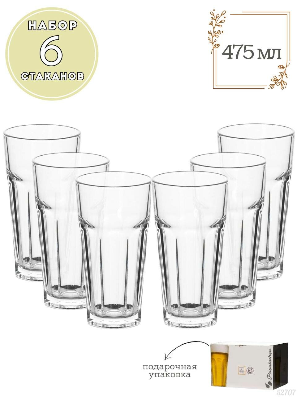| Комплектация | Набор бокалов Pasabahce для пива 6шт, 475 мл |