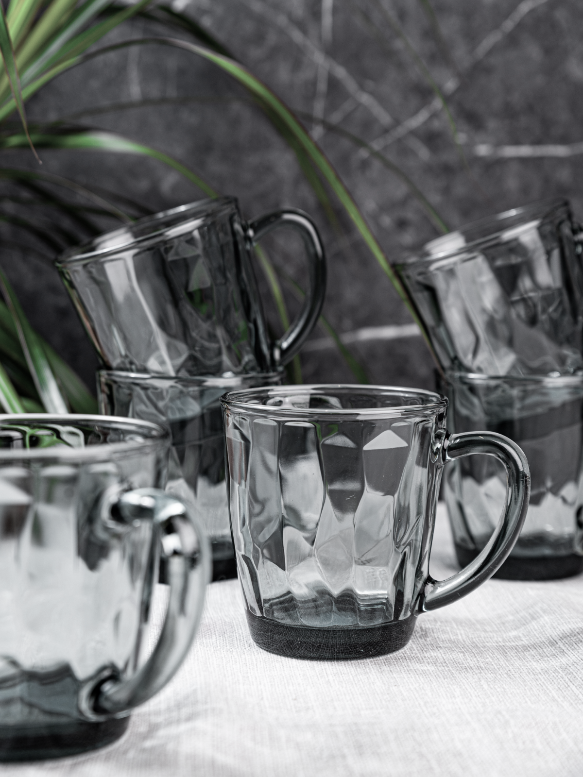 Набор кружек стеклянных, 300 мл, 6 шт, для чая, кофе, Verso ONLY GRAFITE