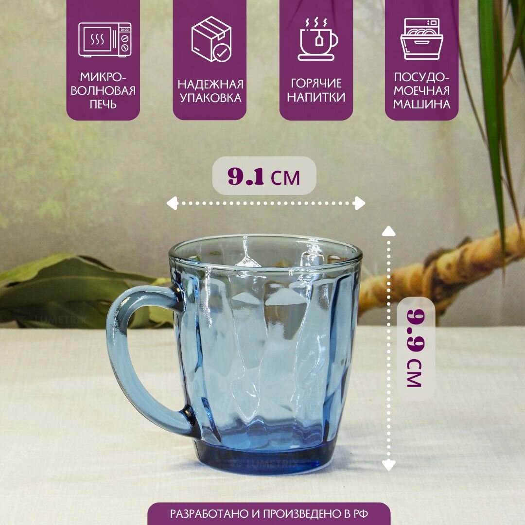 Набор кружек стеклянных, 310 мл, 6 шт, для чая, кофе, Verso SEA BRIM SAPHIR