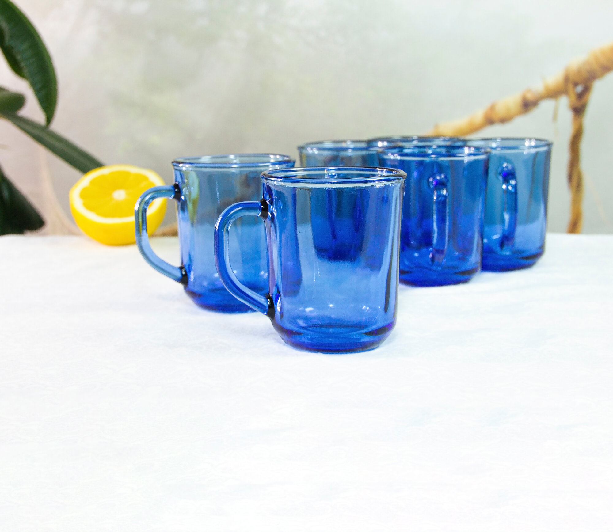 Набор кружек стеклянных, 250 мл, 6 шт, для чая, кофе, Verso SEA BRIM SAPHIR