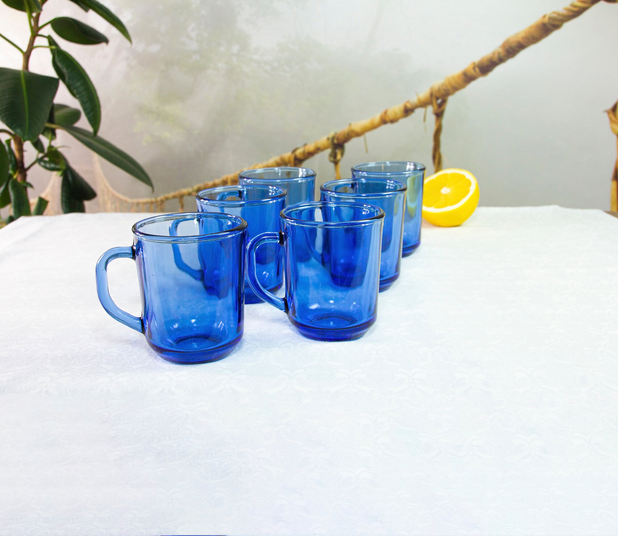 Набор кружек стеклянных, 350 мл, 6 шт, для чая, кофе, Verso SEA BRIM SAPHIR
